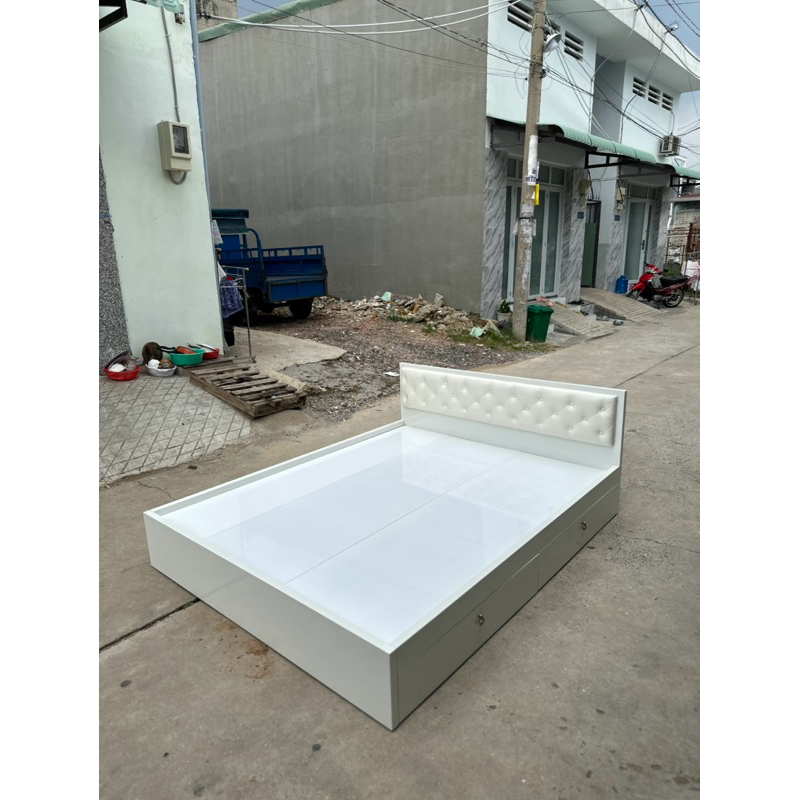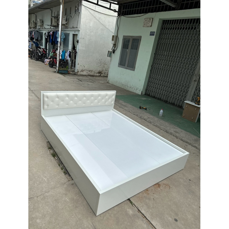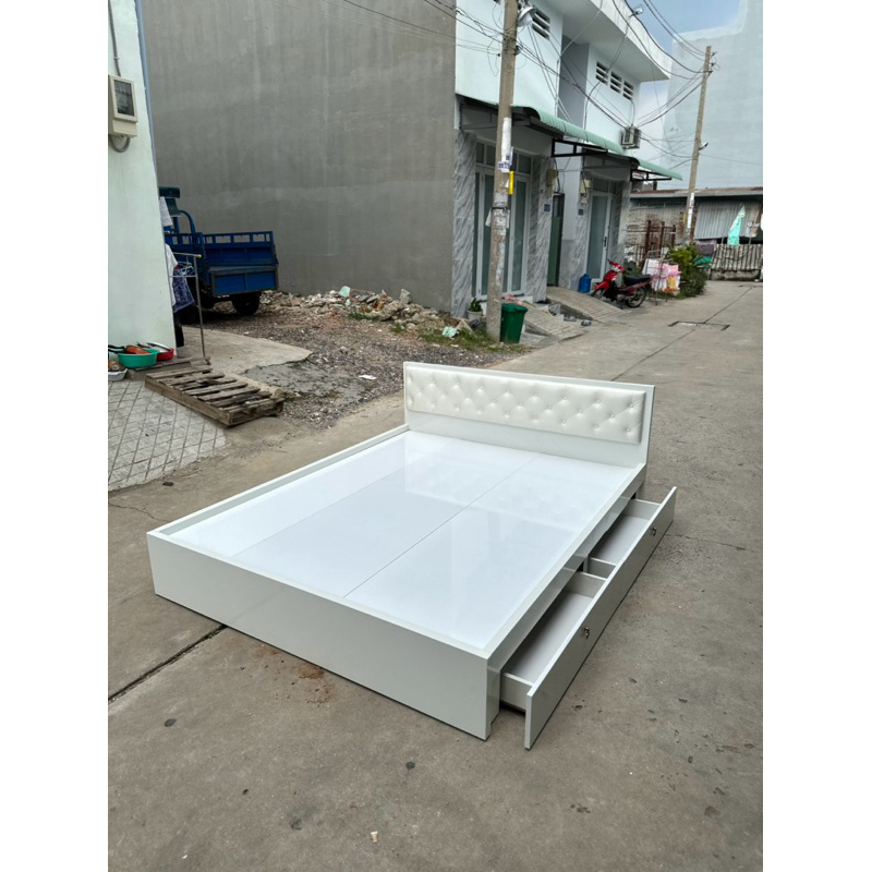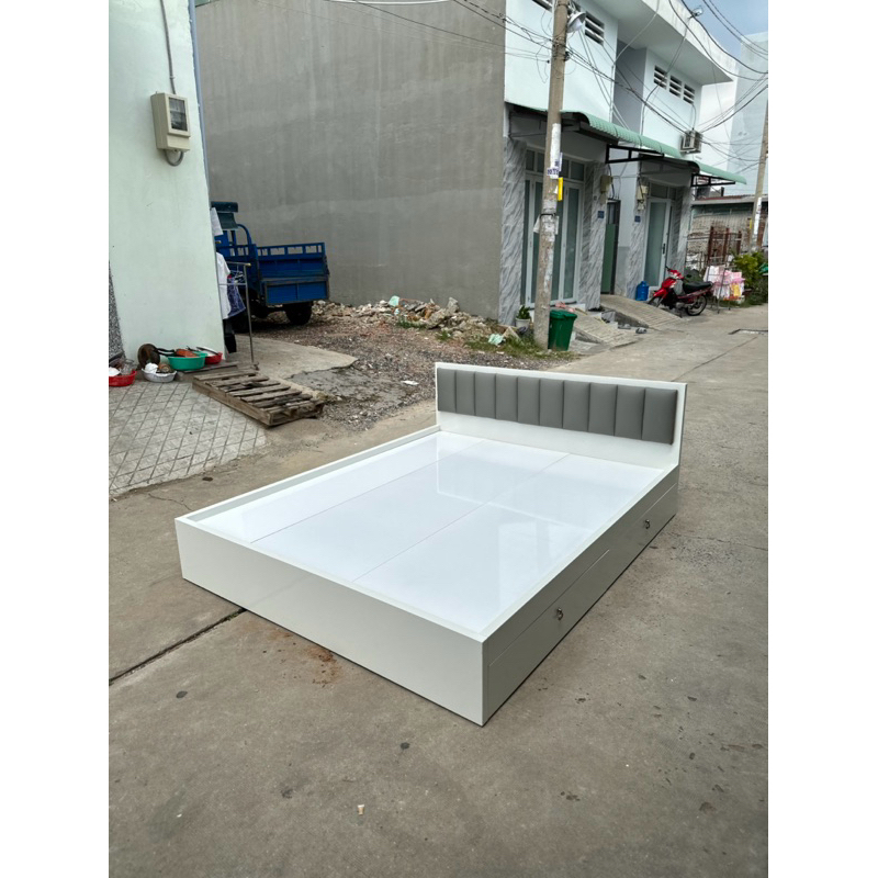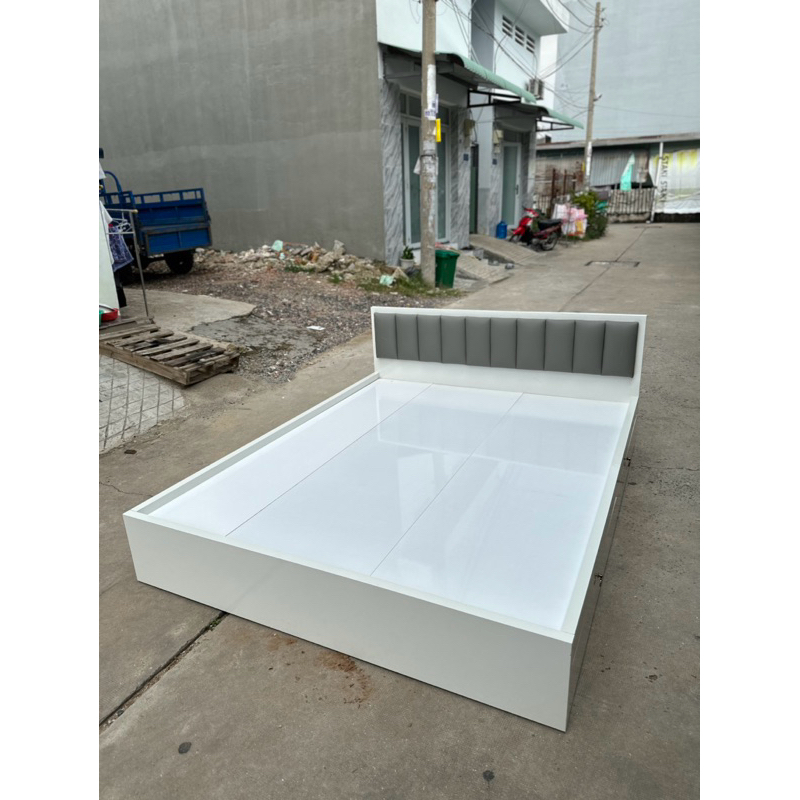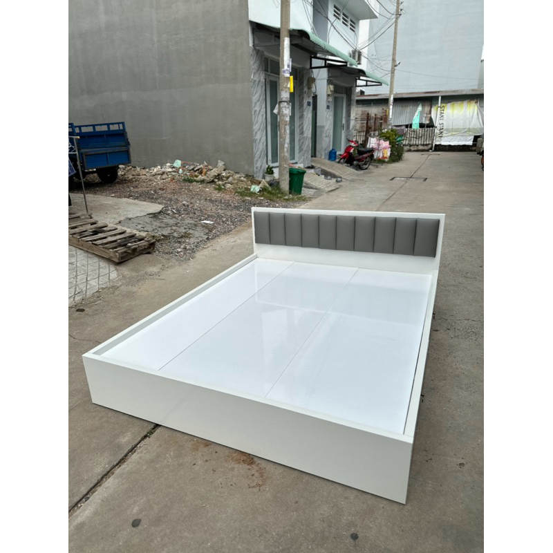 Giường ngủ gỗ, giường ngủ gỗ MDF Trắng có nệm đầu giường [Freeship]