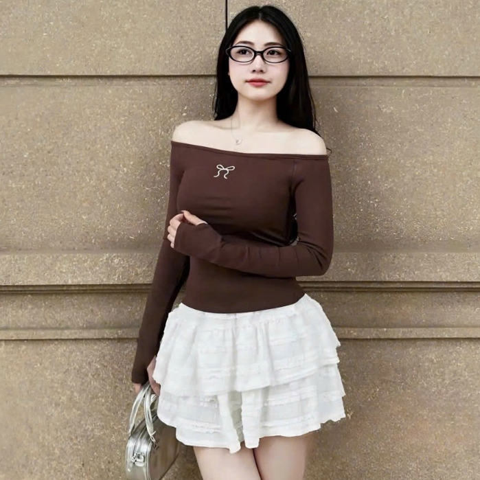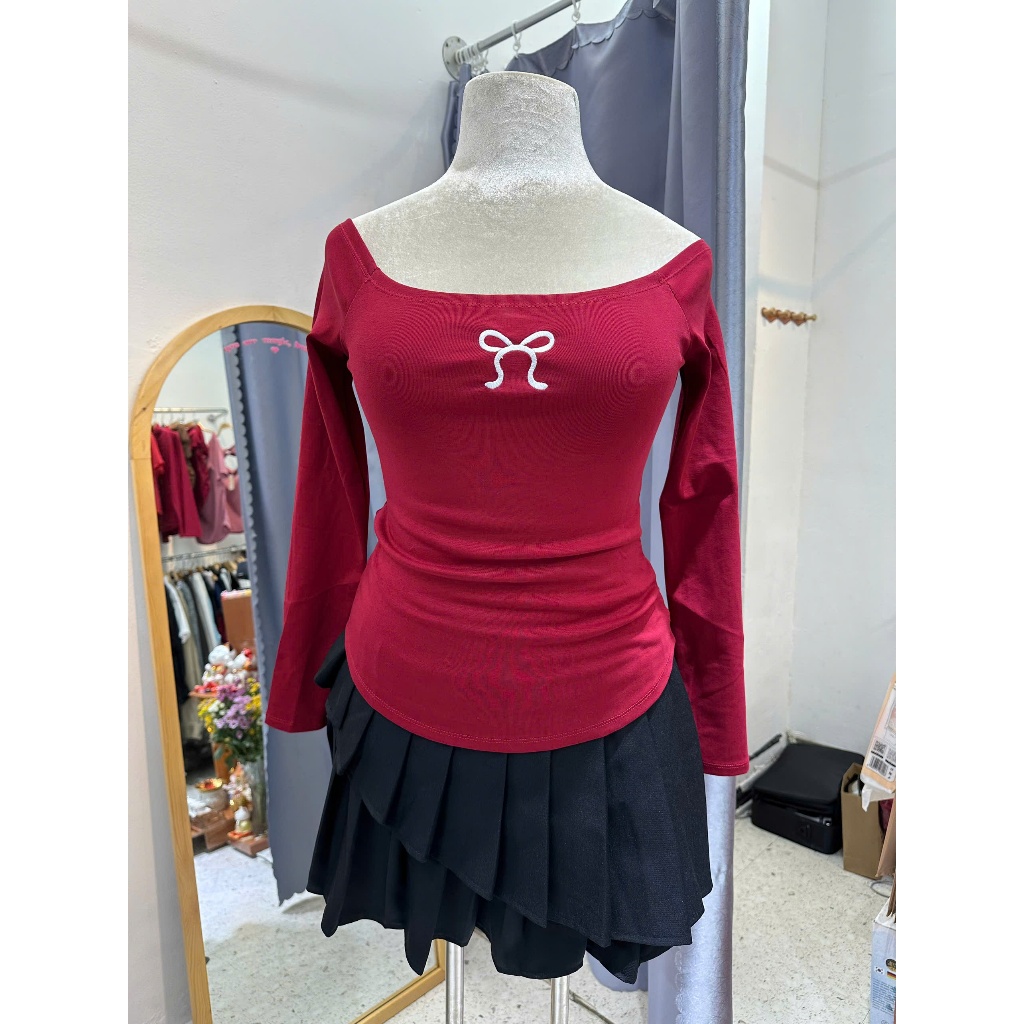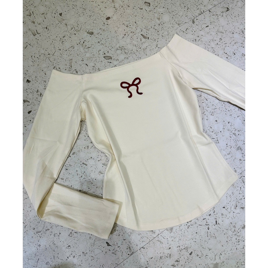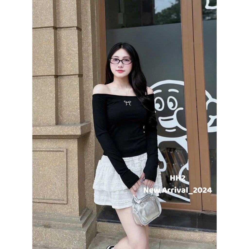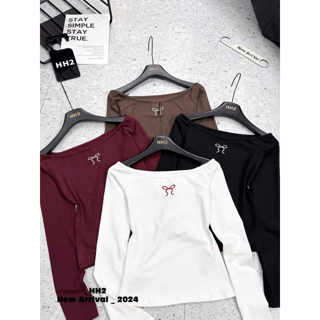 Áo trễ vai tay dài đính nơ thêu vạc bầu bigsize ( 60-100kg) Bí Gơ Bigsize