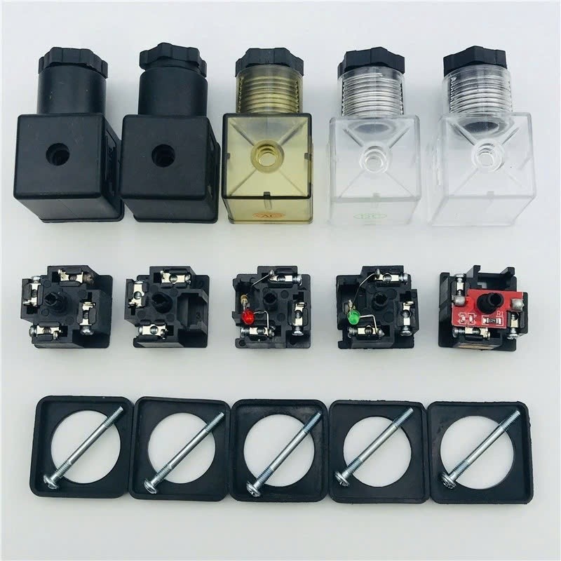 Đầu nối phích cắm DIN43650A DIN43650B màu Đen lõi 2+1GND chụp cuộn coil cho van khí 4v210, solenoid nước, thủy lực TGT