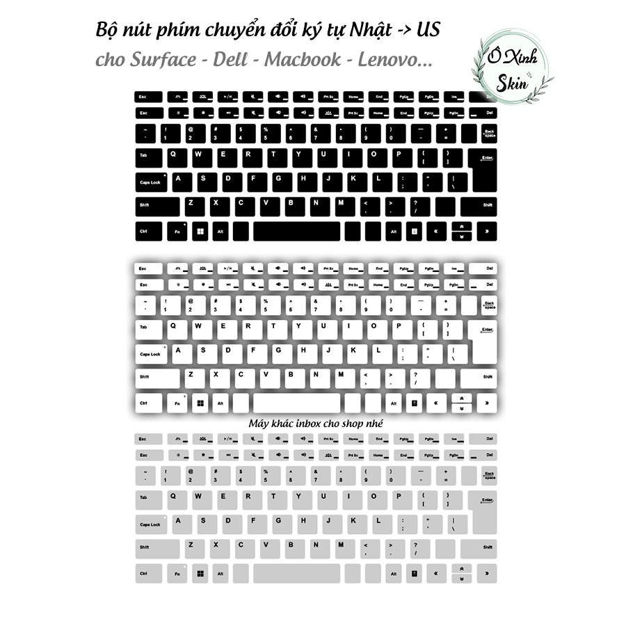Bộ dán nút phím chuyển đổi ký tự Nhật / UK sang US cho Surface / Dell / Thinkpad...( vui lòng inbox mã máy cho shop ạ )