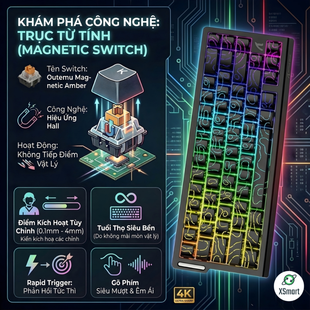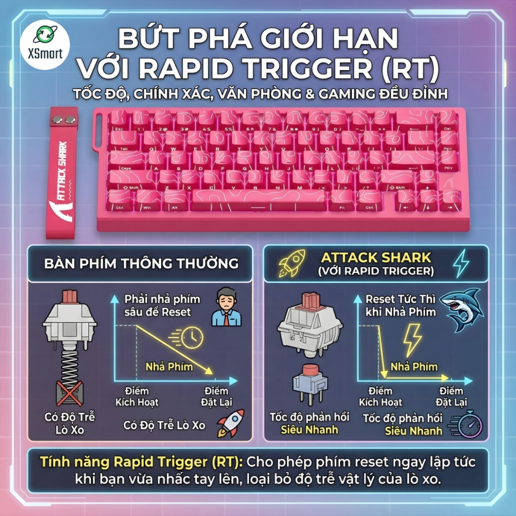 Bàn Phím Cơ Gaming Rapid Trigger Attack Shark X68 HE Polling Rate 8KHz LED RGB Mạch Xuôi