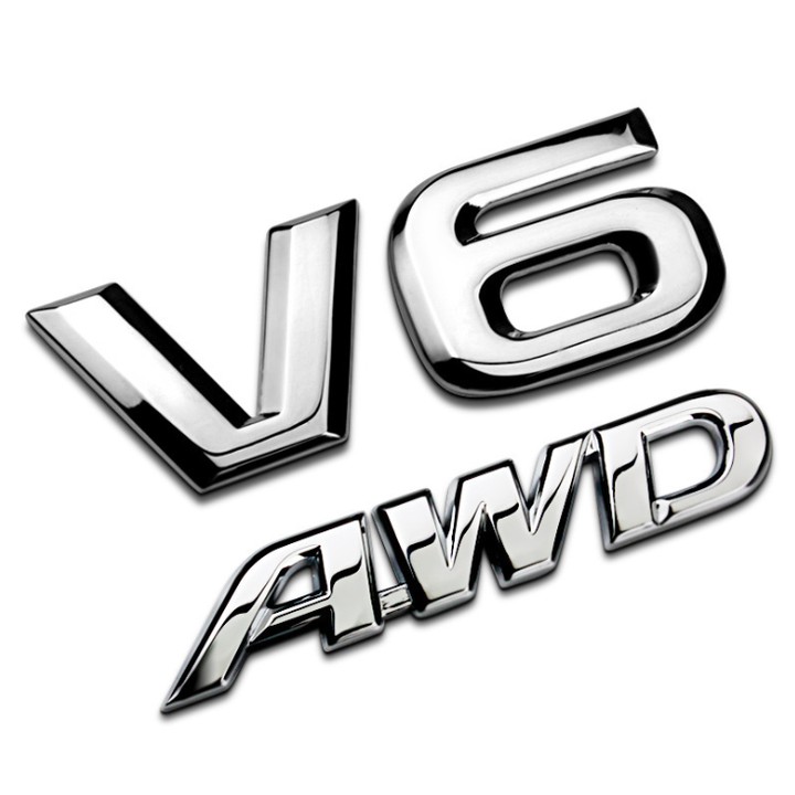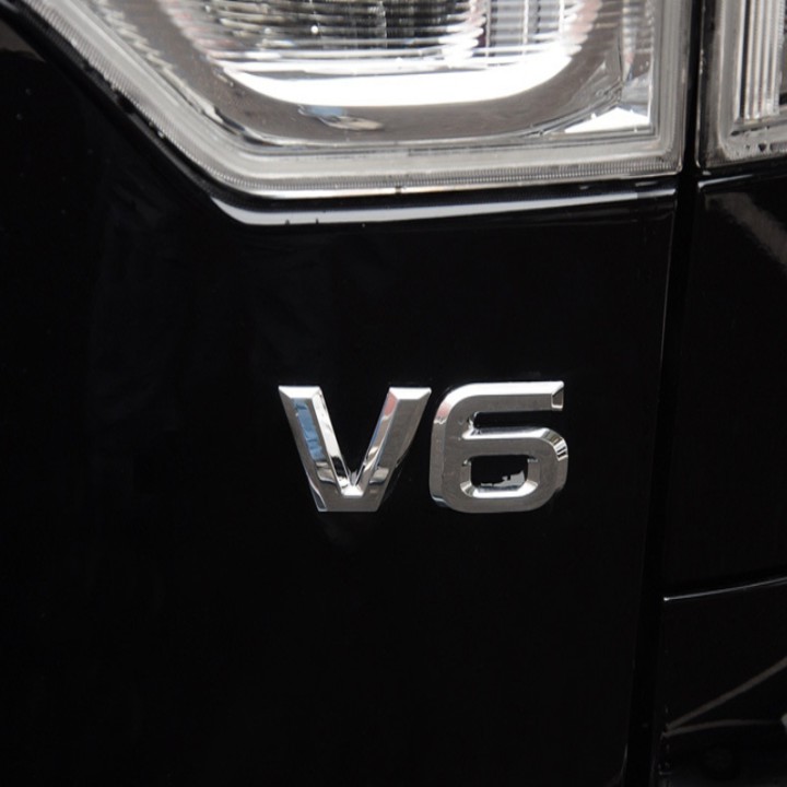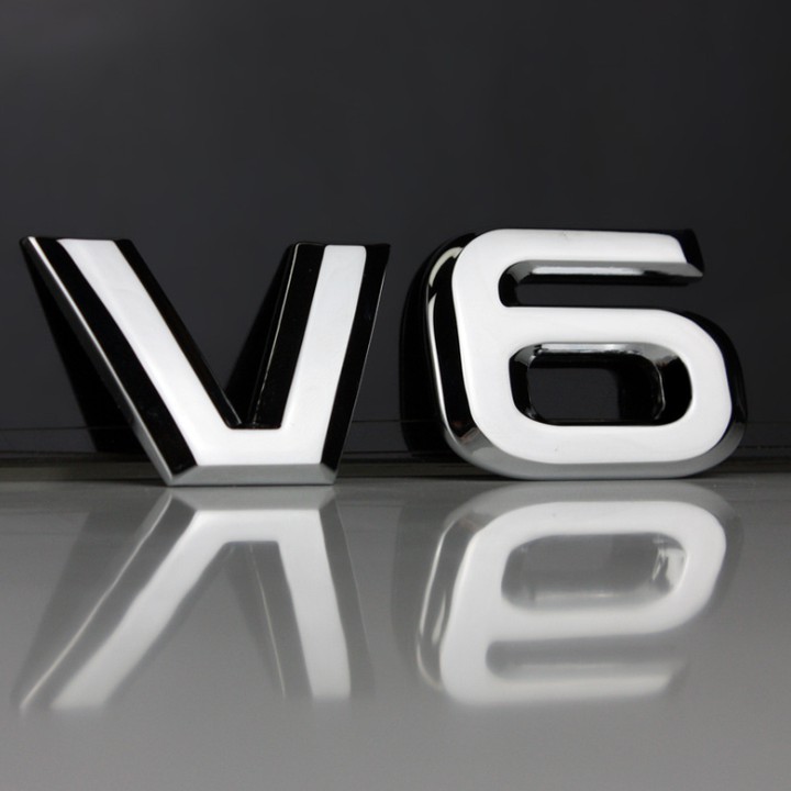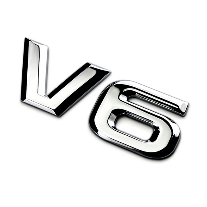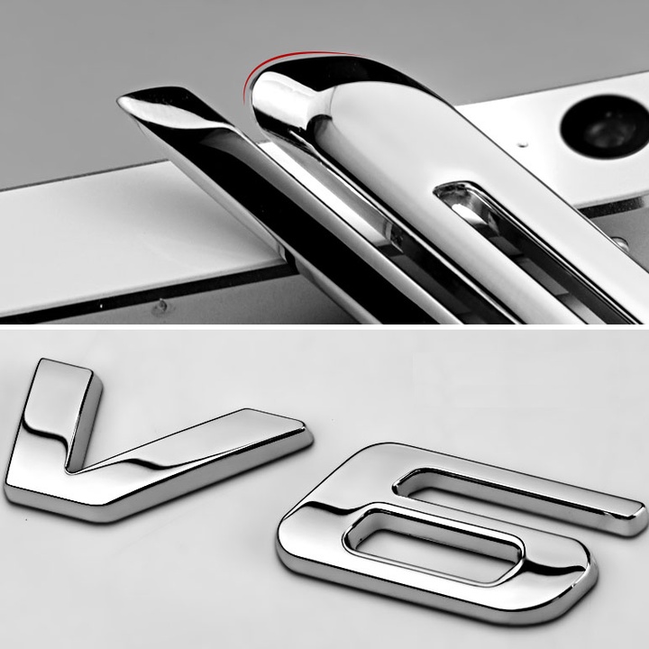 Decal tem chữ V6 inox dán ô tô (Chữ thẳng và chữ nghiêng)