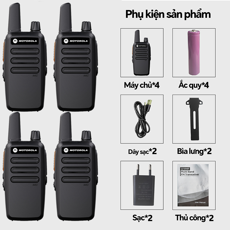 【Bộ 4 chiếc】Máy bộ đàm không trễ 400-470MHZ, thân máy nhỏ gọn, chất liệu chắc chắn, giảm tiếng ồn thông minh, giao tiếp