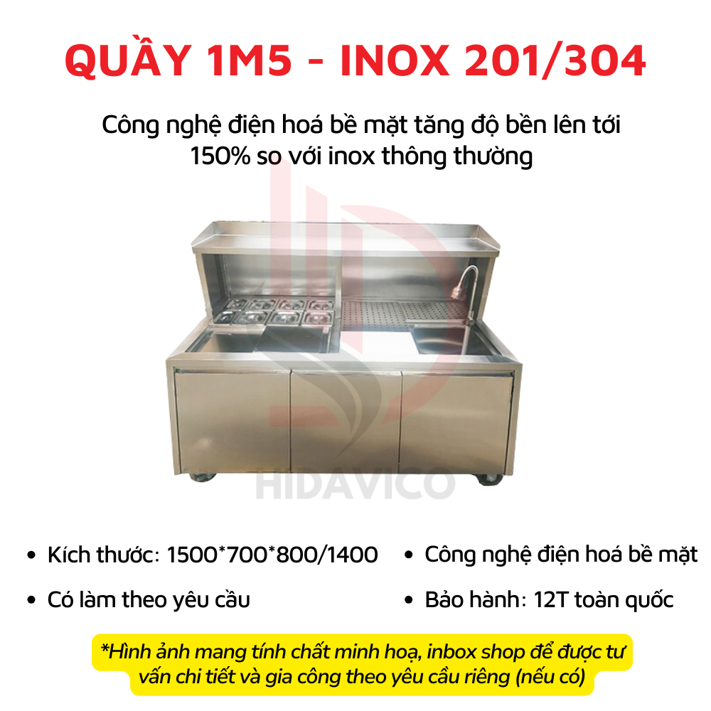 Quầy Pha Chế Inox 304 201 HIDAVICO – Quầy Pha Chế Cafe Trà Sữa Trà Chanh Cocktail