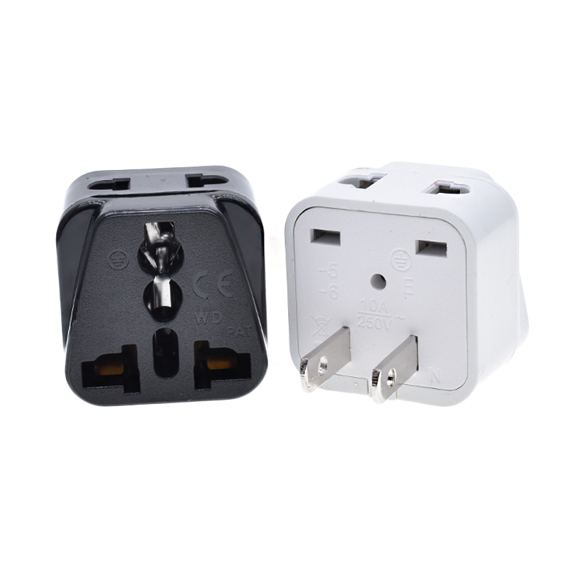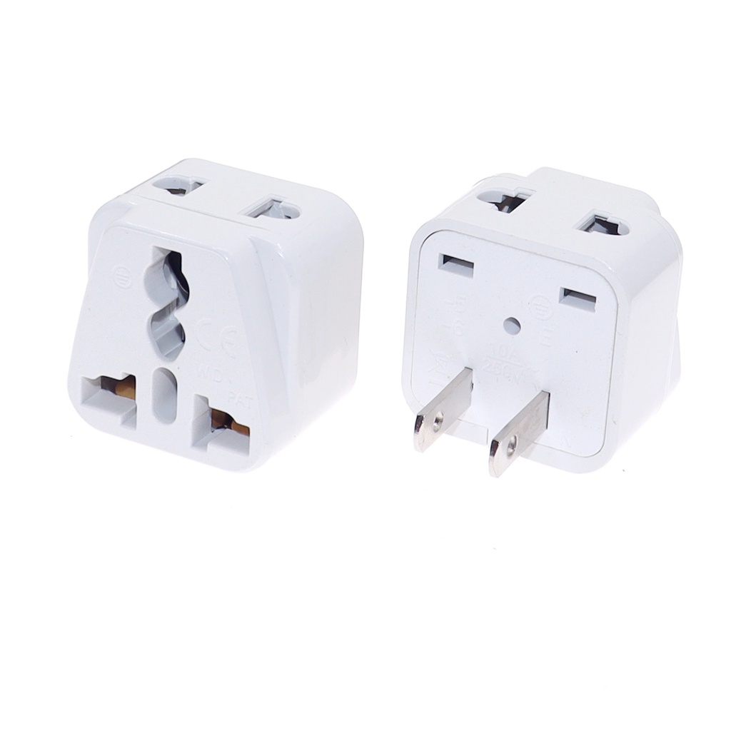 Bộ chuyển đổi du lịch chân phẳng 2 của Mỹ, AU UK EU sang Mỹ Janpan Philippines Bộ chuyển đổi phích cắm điện AC treo tường du lịch, 250V 10A
