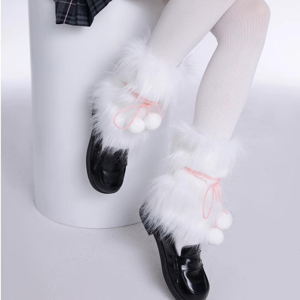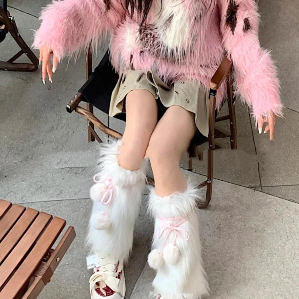 Cofordos Boot Cover Tất, Y2K Cô Gái Thời Trang Lông Chân Ấm Áp, Trắng Dài Đến Đầu Gối Phong Cách Nhật Bản Ren Bóng Ống Dài Tất Nữ