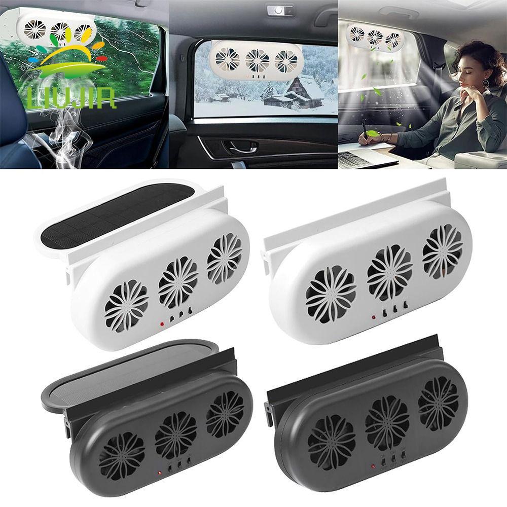 Quạt xả ô tô năng lượng mặt trời LIUJIR, Quạt tản nhiệt ô tô 3 quạt sạc năng lượng mặt trời, Tản nhiệt lưu thông không khí ô tô thực tế 3 đầu Máy thông gió ô tô chạy bằng năng lượng mặt trời cho tản nhiệt ô tô