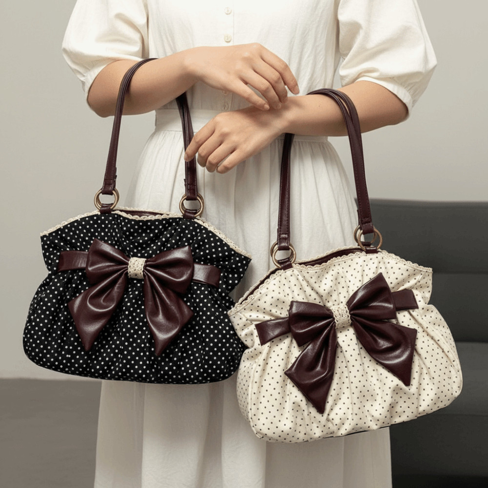Túi xách nữ STYL, Túi Tote chấm bi đa năng dung tích lớn, Túi đeo chéo ren phong cách hợp thời trang Túi đeo vai cổ điển