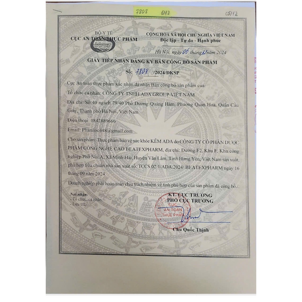 Kẽm ADA 150mg kẽm Gluconat kết hợp Lysin,Selen,Crom. Hỗ trợ sinh lý nam,tăng cơ ,tăng cường sức khỏe...