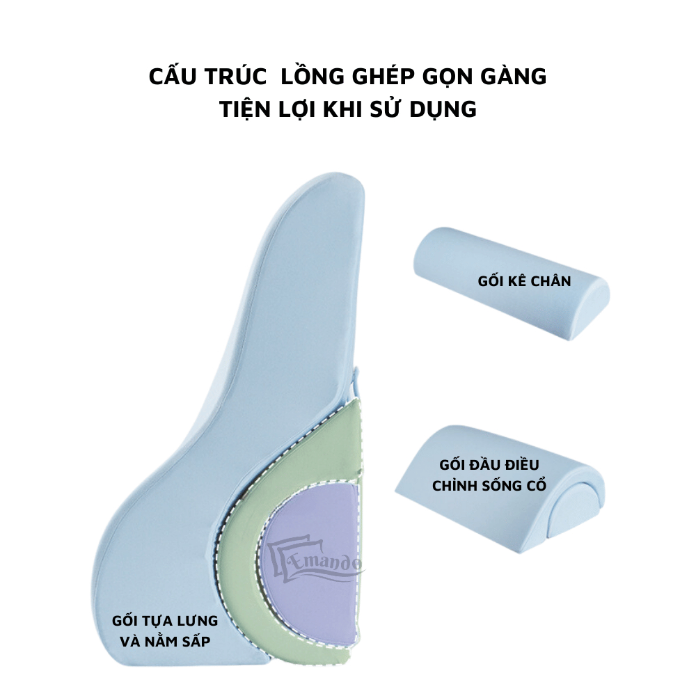 Gối tựa đầu giường kết hợp nằm sấp và kê chân EMANDO chống giãn tĩnh mạch, đau mỏi lưng và chân