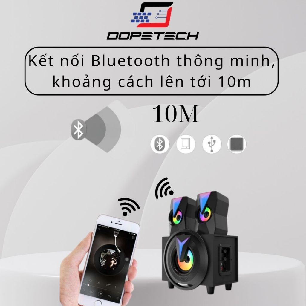 Loa Bluetooth Vi Tính DOPETECH, Loa Máy Tính Laptop Để Bàn K10 Bass Mạnh Trầm Led RGB Siêu Chất