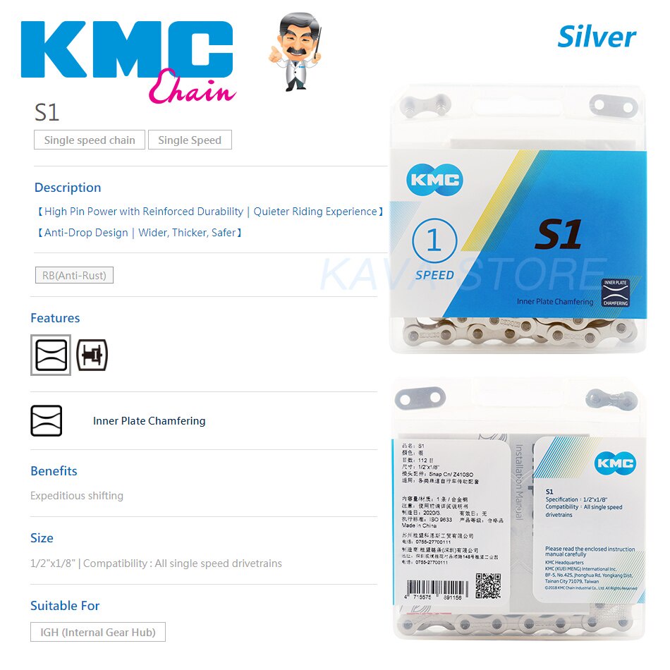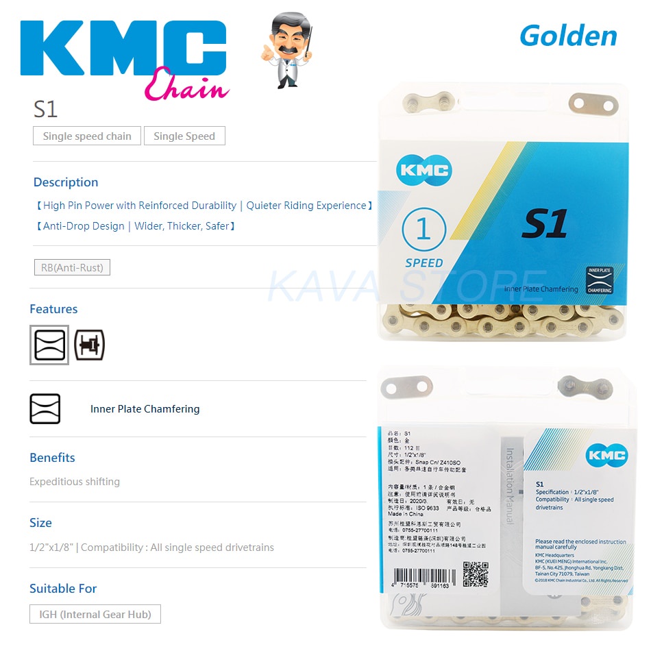 Kmc S1 Dây Xích Tốc Độ Đơn Cố Định Bánh Răng Xích Xe Đạp 112L Urban Giải Trí Gấp Xe Đạp Dây Xích GOLDEN / BẠC Phụ Kiện Xe Đạp