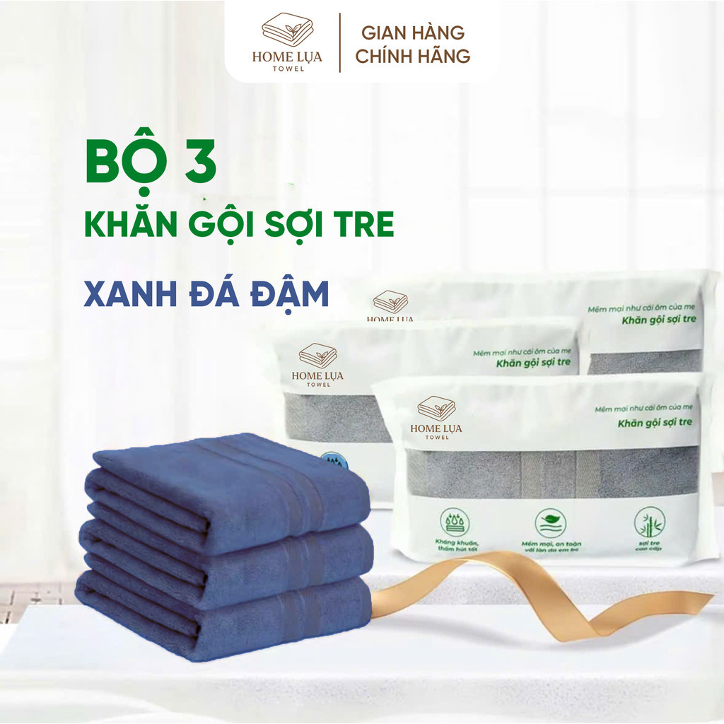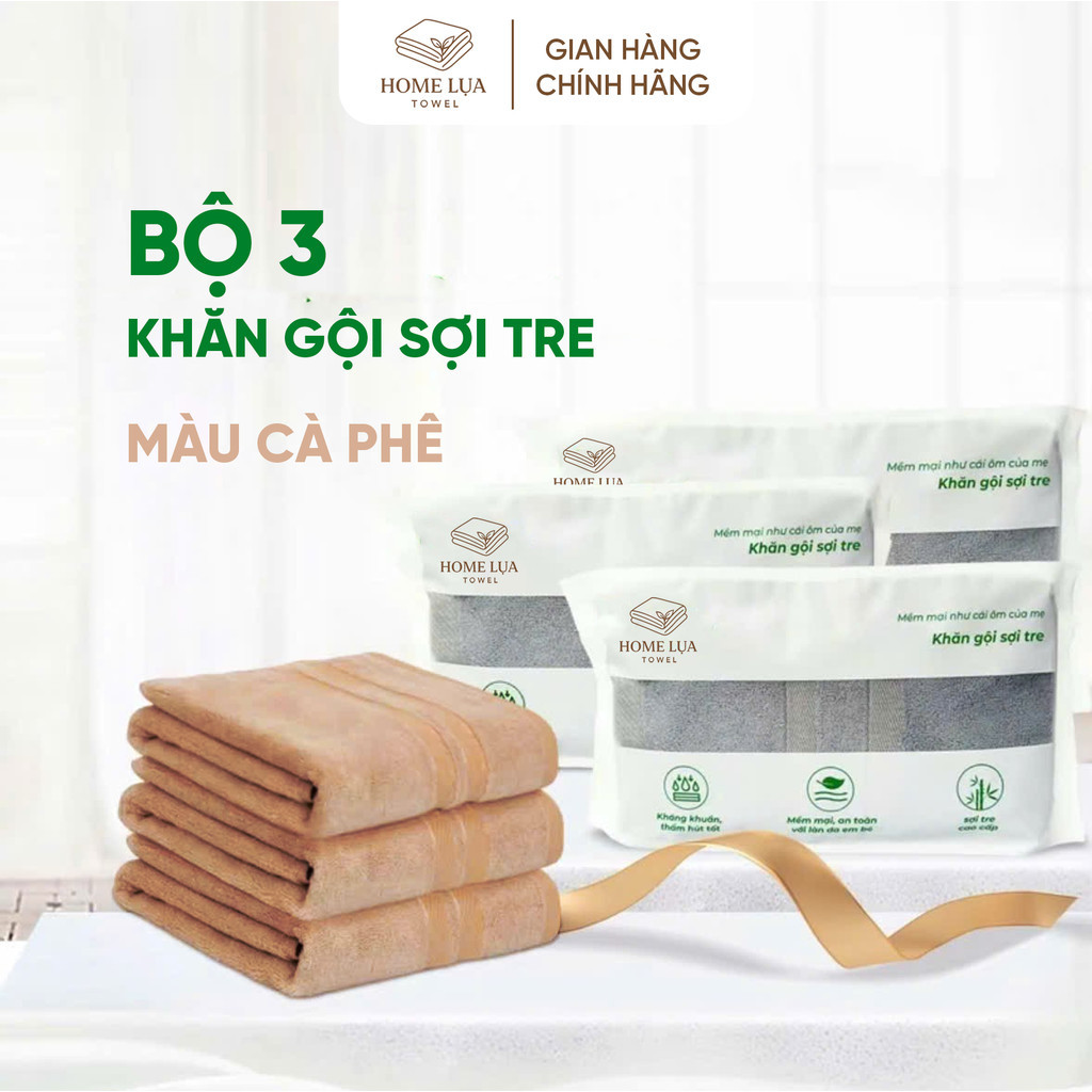 Combo 3 Khăn sợi tre khăn mặt, khăn gội & khăn tắm thấm hút tốt, không đổ lông, không phai màu Home Lụa Towel