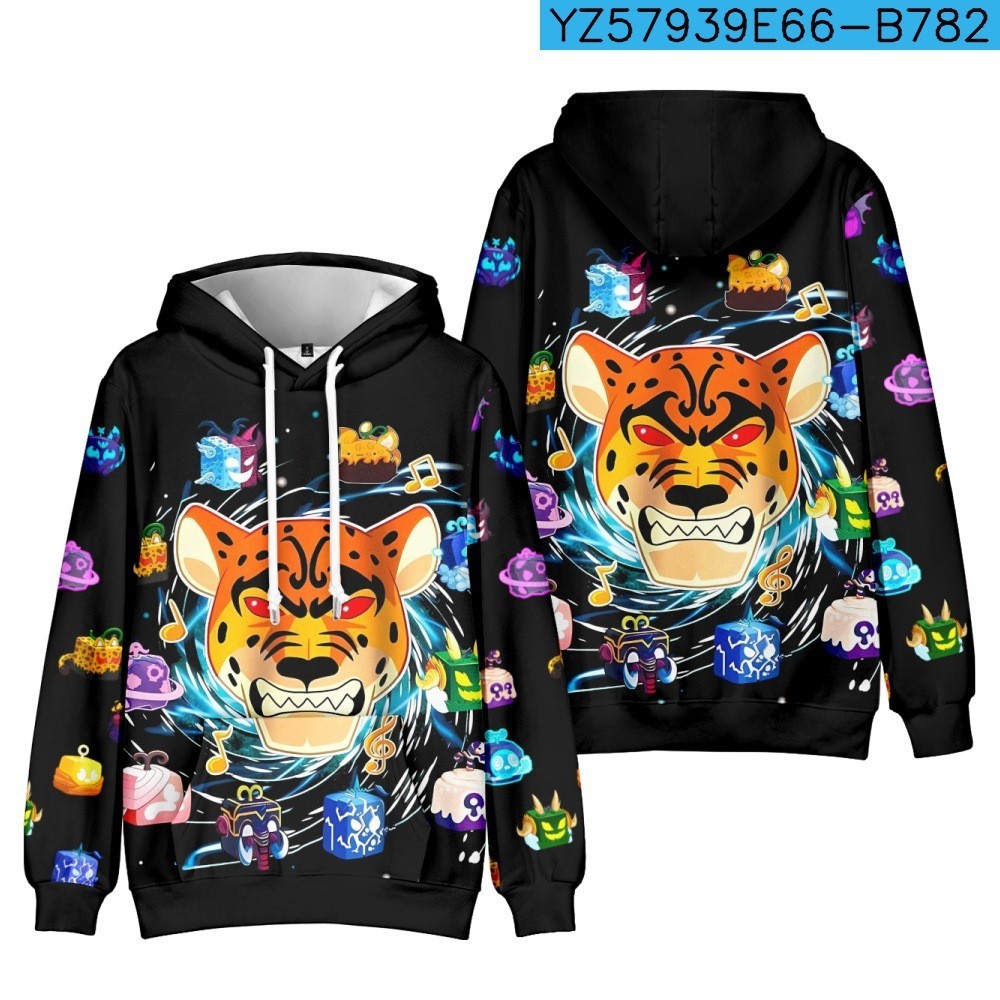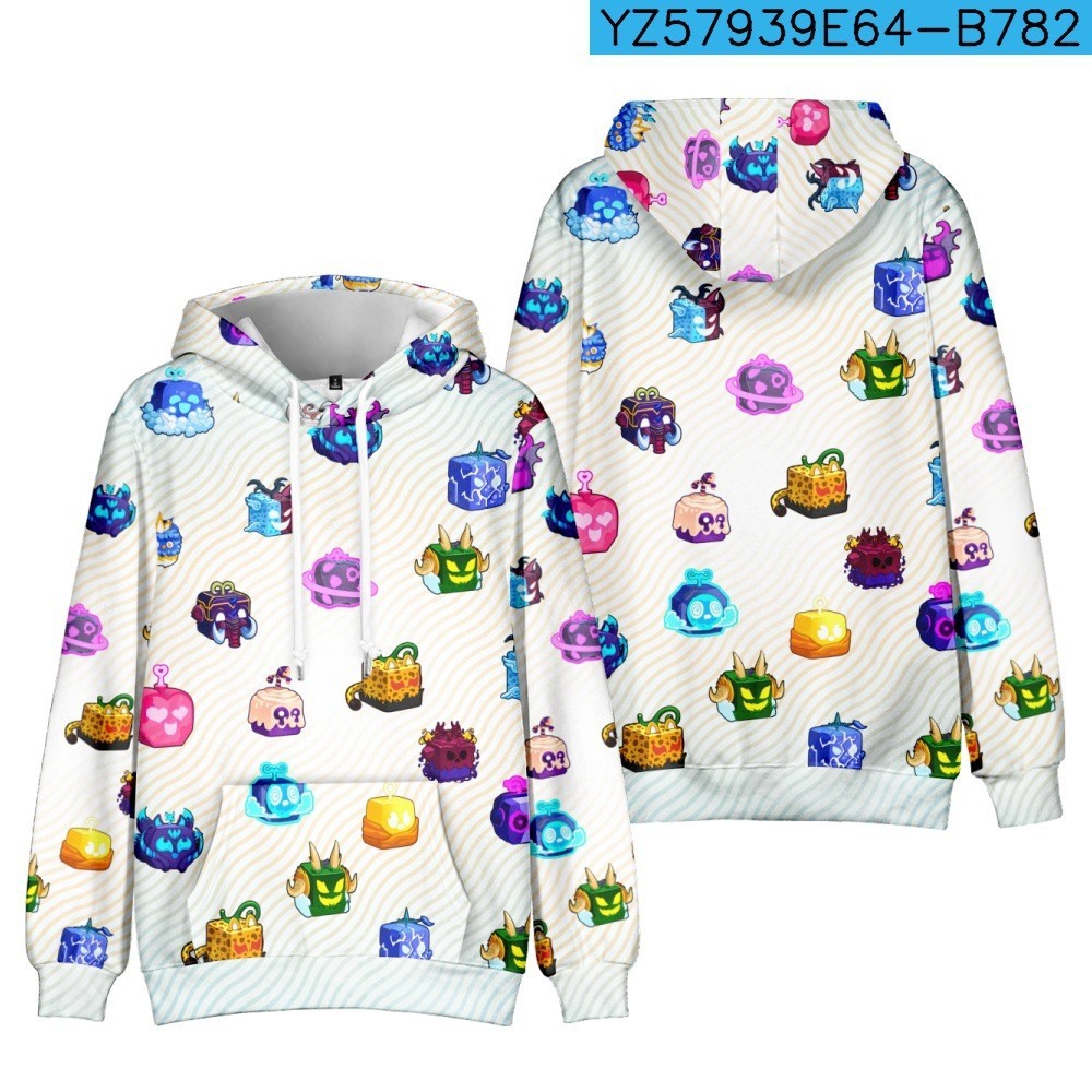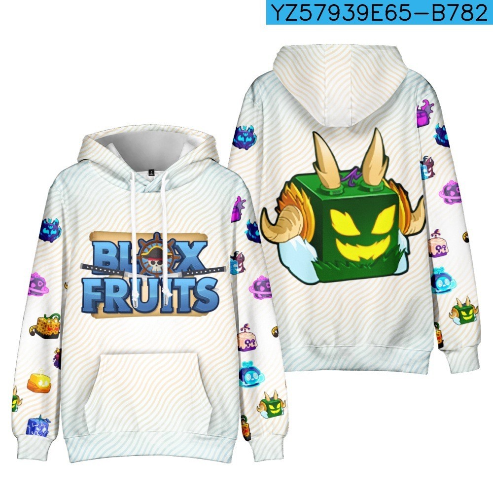 Roblox Game Blox Fruits Áo len có mũ trùm đầu trẻ em Áo len có mũ trùm đầu hợp thời trang Áo Hoodie bé trai và bé gái