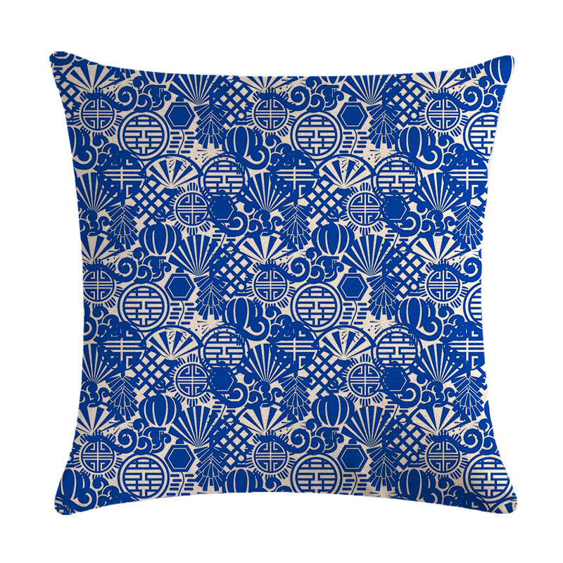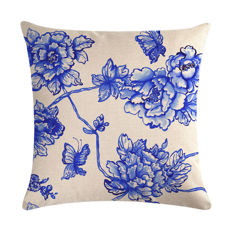 Màu xanh Chinoiserie Vải Lanh Ném Gối Đệm Ô Tô Vỏ Gối Trang Trí Nhà 45 * 45cm In Một Mặt