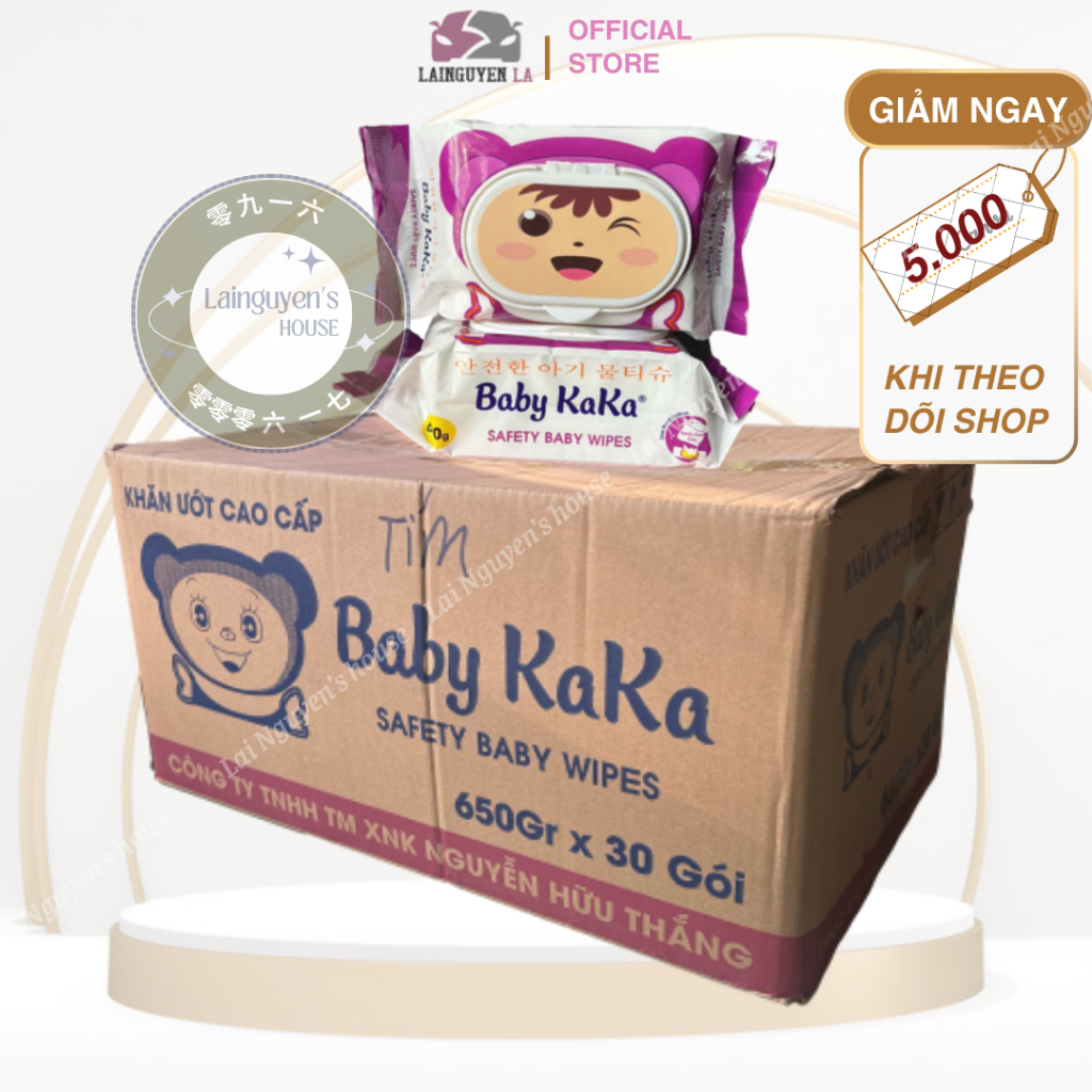 Thùng Khăn Giấy Ướt Baby Kaka 650gr/gói, Không Cồn Phù Hợp Cho Da Nhạy Cảm (30 gói/thùng)