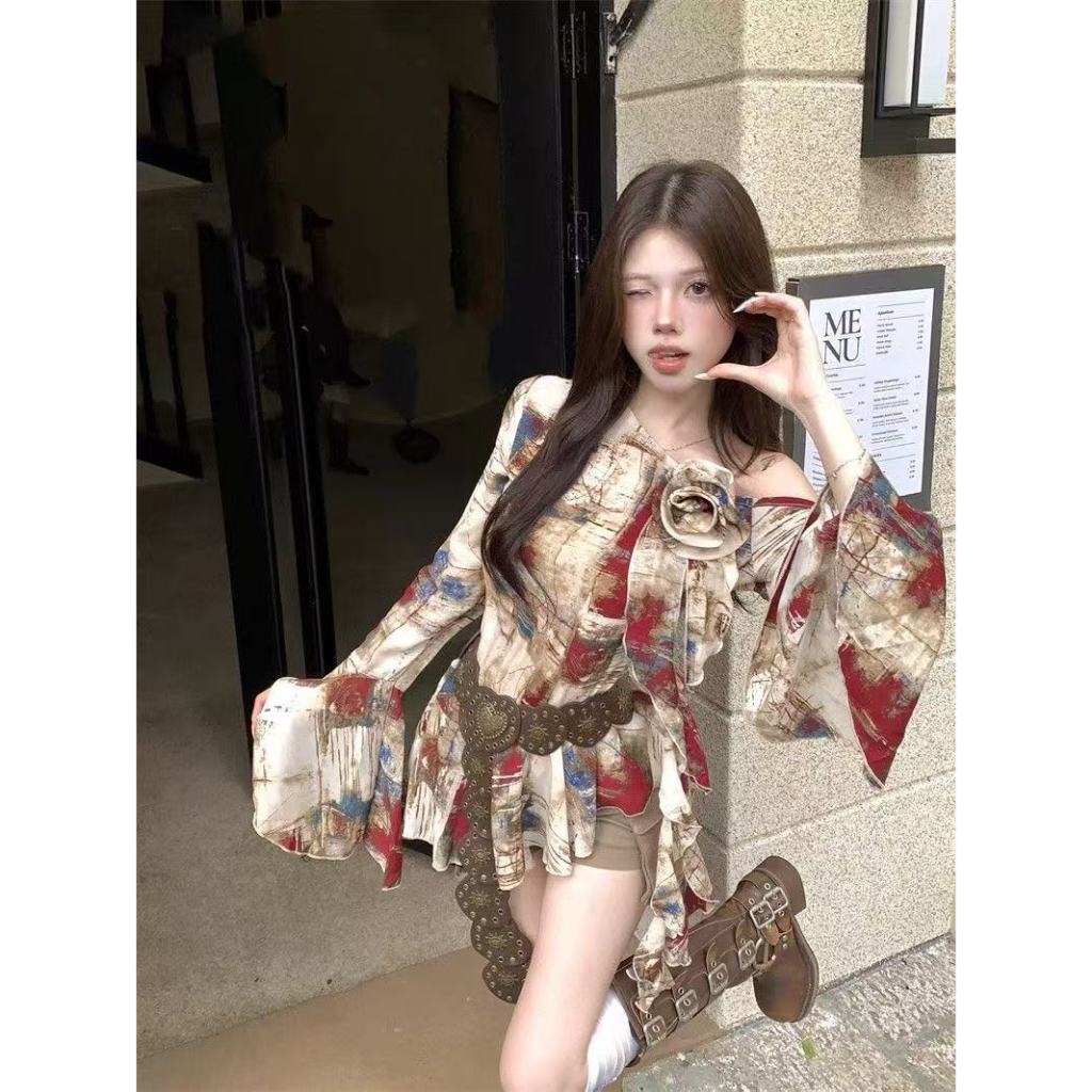 Áo trễ vai hoa đính nơ ngầu cho nữ đi chơi du lịch cá tính mẫu mới 2025
