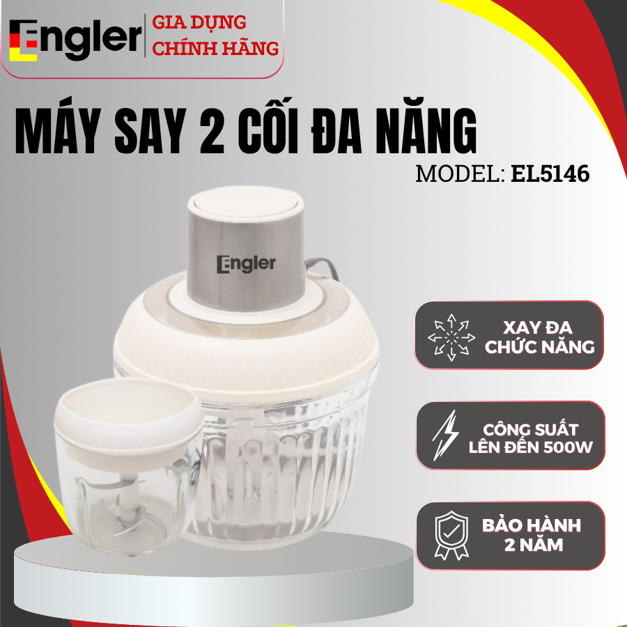 Máy Xay Thịt Đôi Đa Năng EL5146 Engler Dung Tích 0.6L-2L Công Suất 500W 2 Cối Thủy Tinh BH 24 Tháng