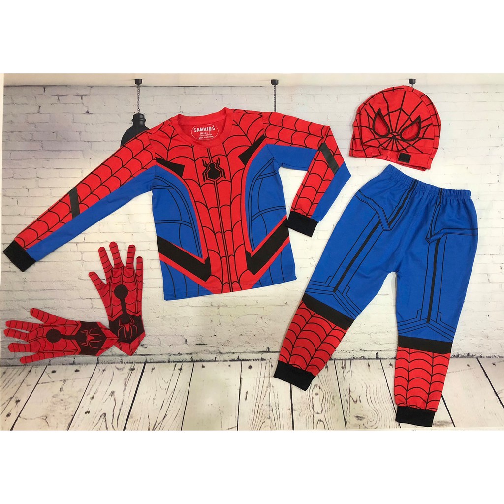 Quần áo người nhện [FREE SHIP] Spiderman dài tay kèm bao tay và mặt nạ
