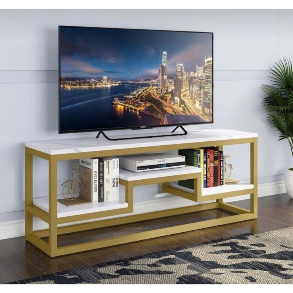 kệ tivi phòng khách, decor khung sắt sơn tĩnh điện gỗ MDF cao cấp màu trắng đen vân gỗ