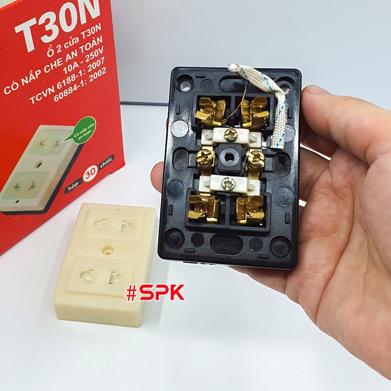 SOPOKA Ổ Cắm Điện 2 Lỗ Gắn Táp Lô T30N Có Màn Che An Toàn Chịu Nhiệt 2200W 10A 220V 50Hz