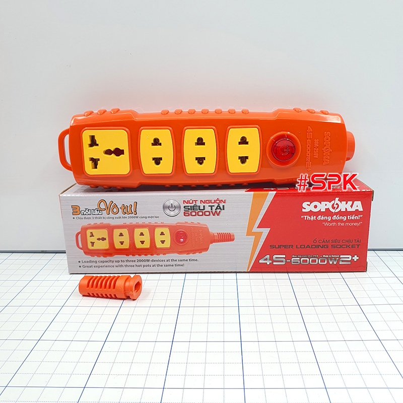 SOPOKA Ổ Cắm Điện 4 Lỗ CHƯA KÈM DÂY (Tự Đấu Dây) 6000W - 4S6000W2 - Siêu Tải Lõi Sứ Chống Cháy