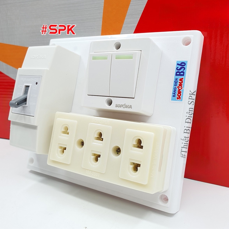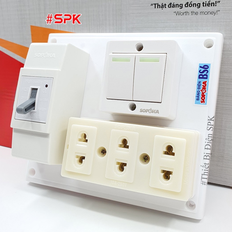 SOPOKA Bảng Điện BS6 2 Công Tắc 3 Lỗ Cắm CB Cóc 30A Dễ Lắp Đặt An Toàn Cho Gia Đình Văn Phòng