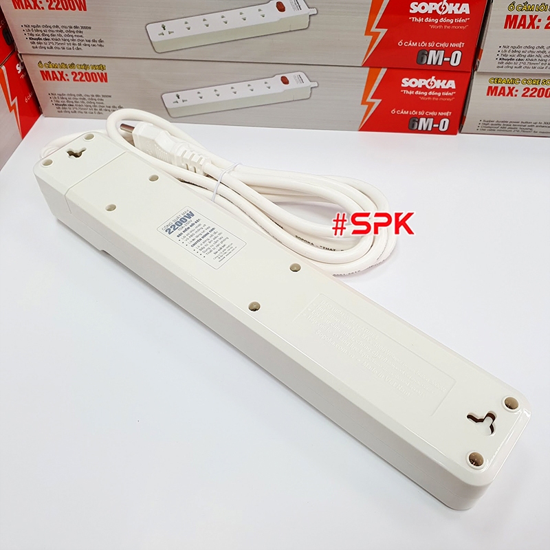 SOPOKA Ổ Cắm Điện 6M2 2200W Lõi Sứ Chịu Nhiệt ABS Chống Vỡ Có Công Tắc ON/OFF Tiết Kiệm Điện