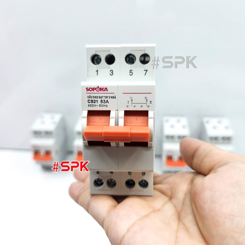 SOPOKA Cầu Dao Gạt Tay 2 Ngã 2P CS2P63A 230/400V AC 63A 25mm² Nhựa Chịu Nhiệt Chuẩn V0