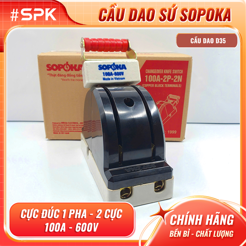 SOPOKA Cầu Dao Đảo Đế Sứ D35 100A 2P 600V Màu Đen Thiết Bị Điện Dân Dụng Chống Cháy An Toàn SPK #SPK