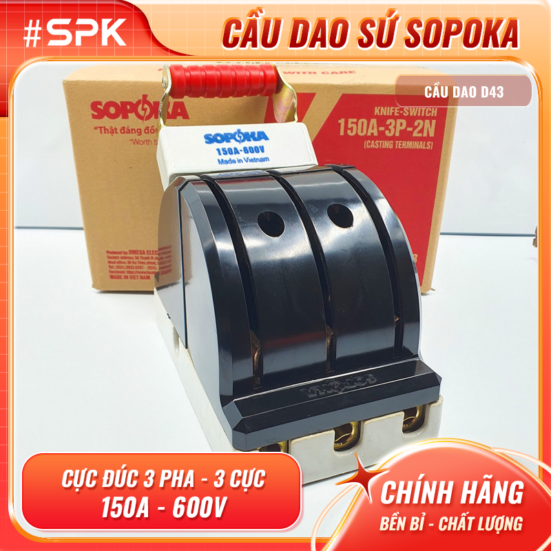 SOPOKA Cầu Dao Đảo Đế Sứ 3 Pha 150A 3P 2N 600V Màu Đen D43 Thiết Bị Điện Công Nghiệp