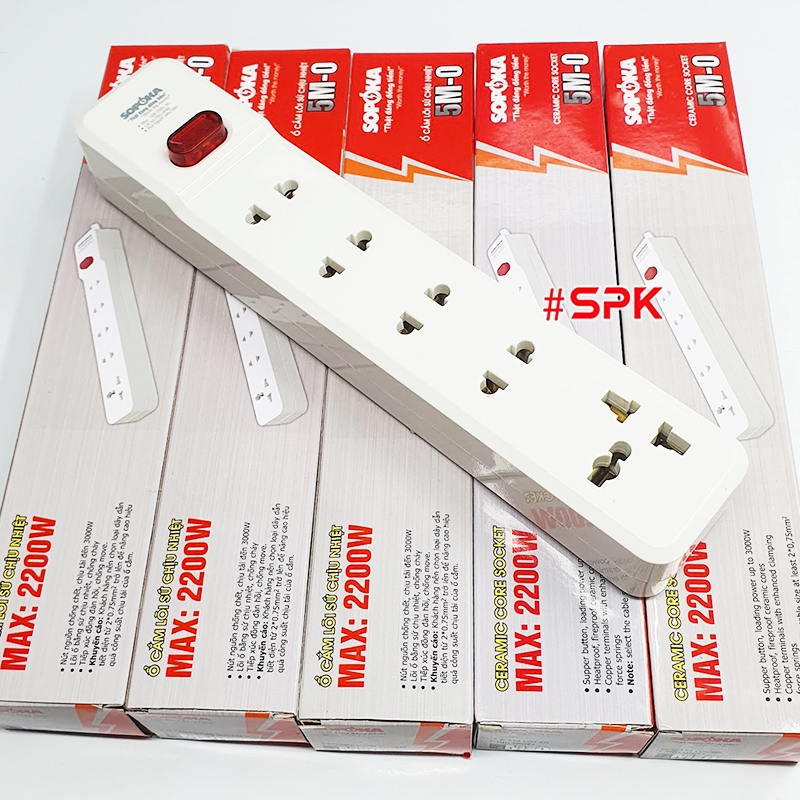 SOPOKA Ổ Cắm Điện 5 Lỗ CHƯA KÈM DÂY (Tự Đấu Dây) 2200W Lõi Sứ Có Công Tắc - 5M0 - Chịu Nhiệt