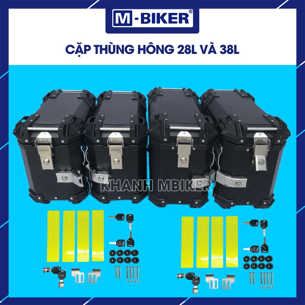 Thùng hông M Biker dung tích 16L 26L 28L 38L, Thùng nhôm xe motor touring - Chống nước - Khoá inox