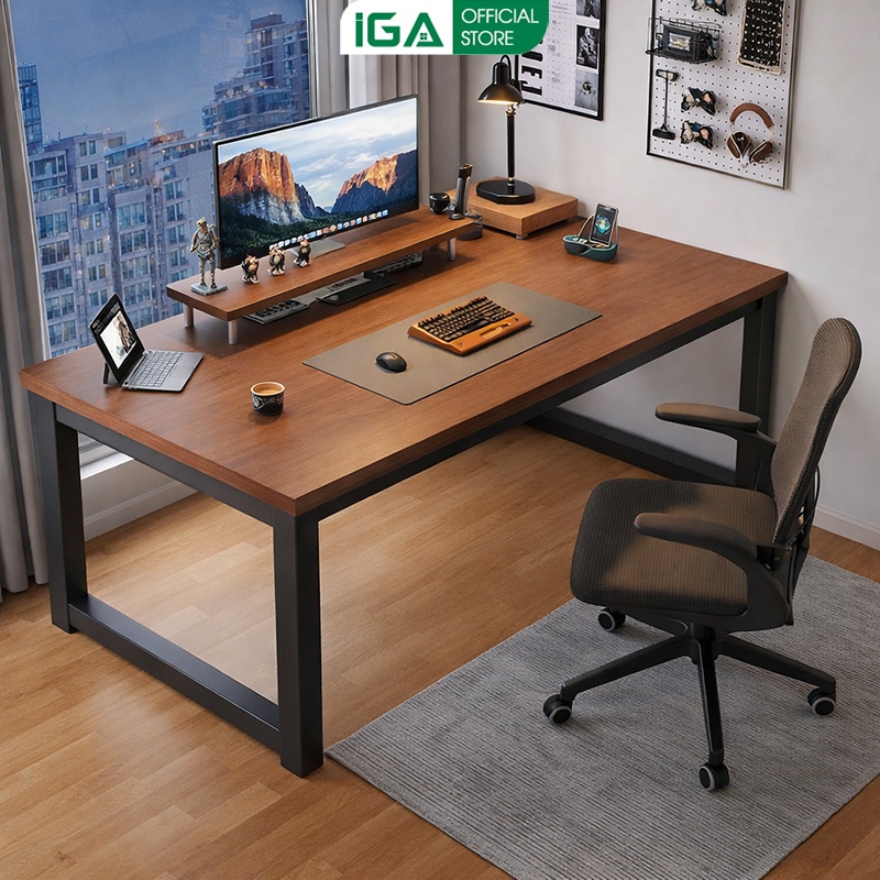 Bàn làm việc đa năng dài 1m6 khung thép lớn 40x40 mặt gỗ MDF thương hiệu IGA - GM166