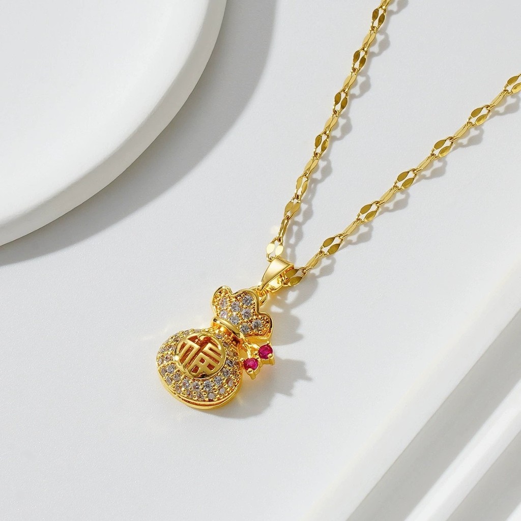 Vòng cổ mặt dây chuyền cát vàng rỗng túi may mắn - Phụ kiện thời trang làm quà tặng