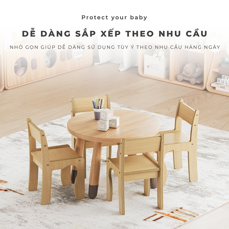 Ghế ngồi trẻ em có tựa chất liệu gỗ Polywood thương hiệu ILUMIA - PG14