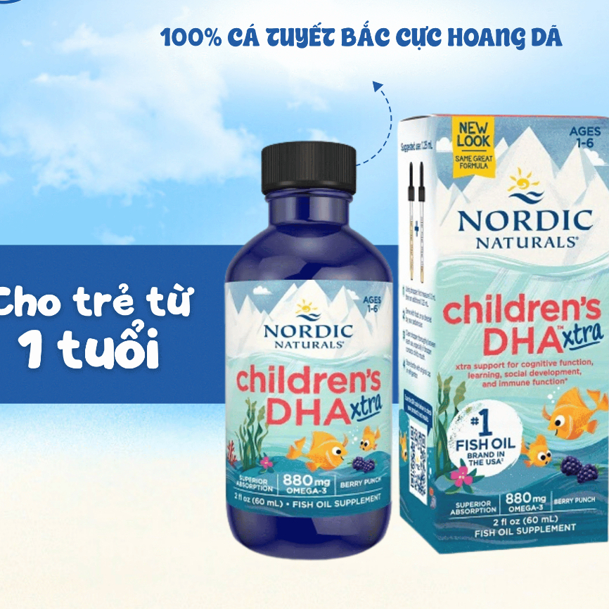 [HÀNG CHÍNH NGẠCH] Siro Bổ Sung DHA Cho Trẻ Từ 1 Tuổi DHA Children Extra Nordic Natures Phát Triển Trí Não 60ml