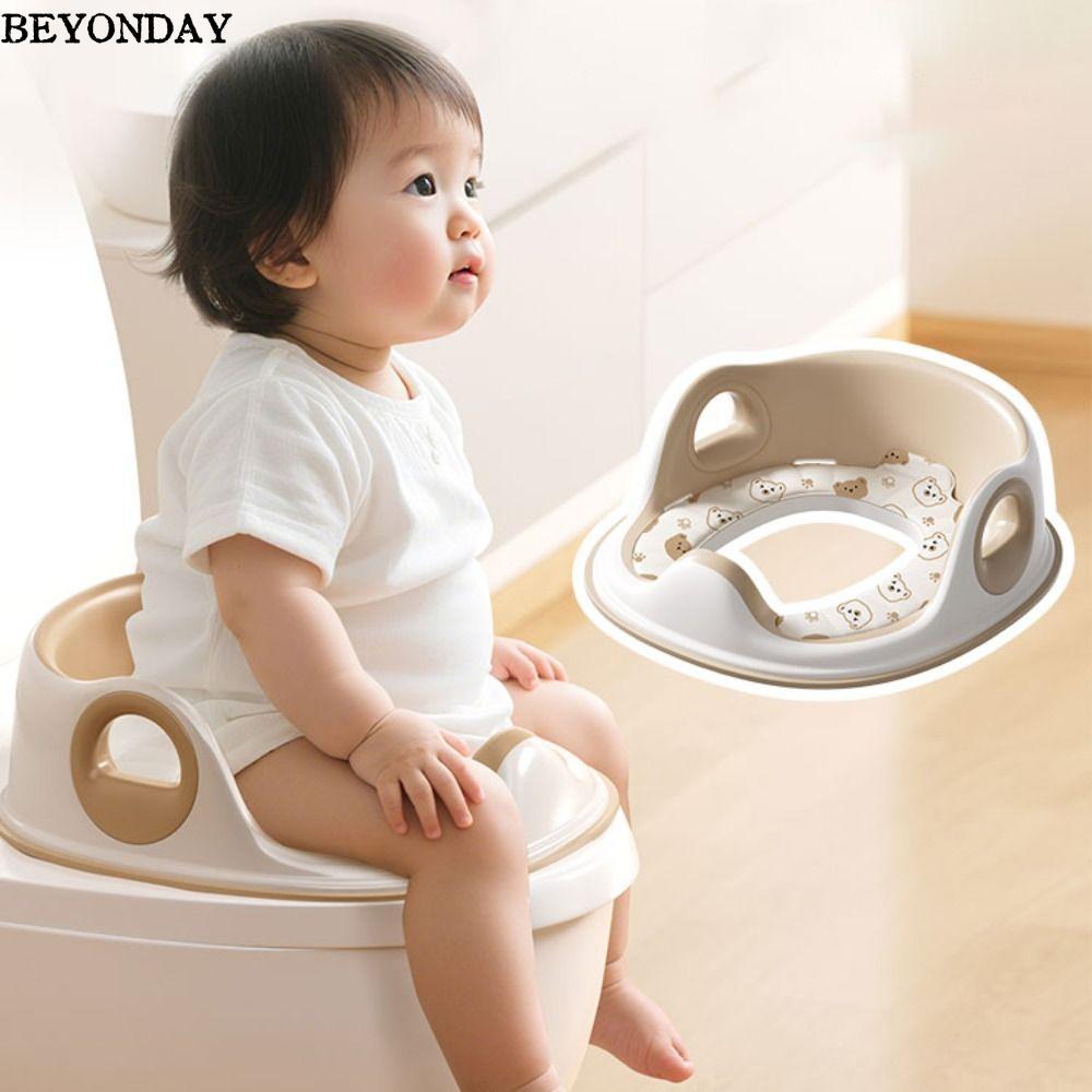Ghế vệ sinh trẻ mới biết đi BEYONDAY, có tay cầm Ghế tập bô cho bé có thể tháo rời, Đệm bô hình gấu hoạt hình EVA chống trượt cho bé 0-3 tuổi