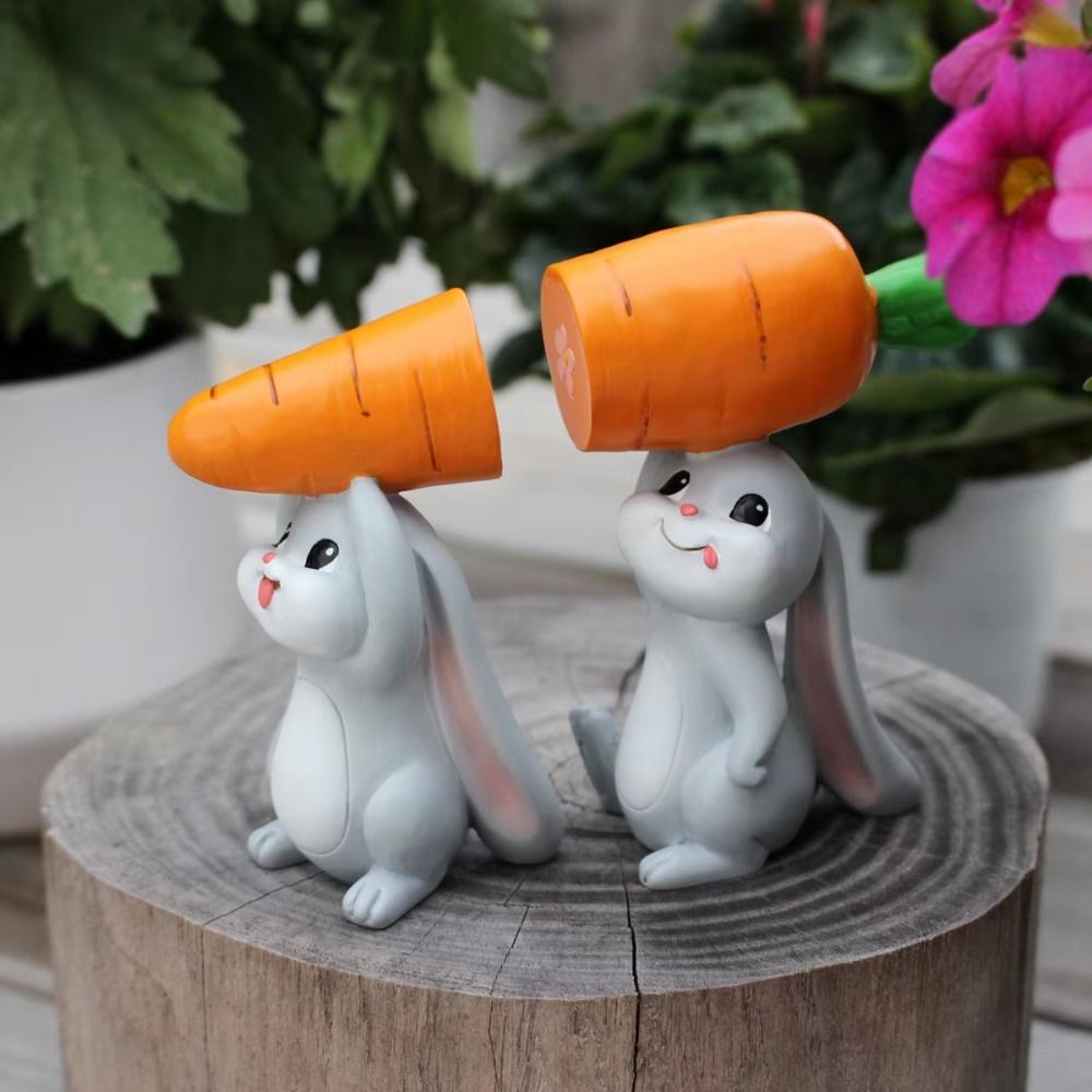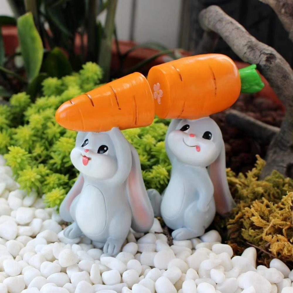 BLAZETEC 2 Cái / bộ Tượng Thỏ Phục Sinh Dễ Thương, Mô Phỏng Thỏ Nhựa Nhiều Màu Sắc Trang Trí Thỏ, Tinh Tế Vẽ Tay Mới Lạ DIY Cà Rốt-Bức Tượng Thỏ Sống Động Như Thật