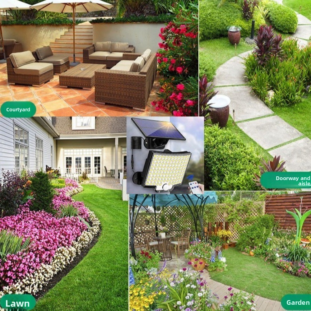 Đèn cảm biến chuyển động HOUCHU, Đèn ngoài trời năng lượng mặt trời cảm biến tự động chống nước, Đèn lũ Điều khiển từ xa chạy bằng năng lượng mặt trời 234LED Đường dẫn ánh sáng lũ ban đêm