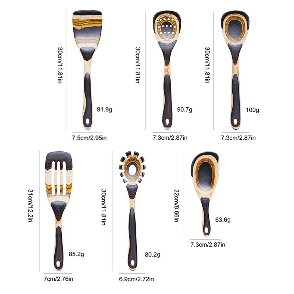 Bộ dụng cụ nhà bếp BANGSHE, Thìa gỗ chịu nhiệt không biến dạng, bền có lỗ treo Bộ dụng cụ nấu ăn Muỗng ăn phong cách Ma-rốc Dễ dàng làm sạch