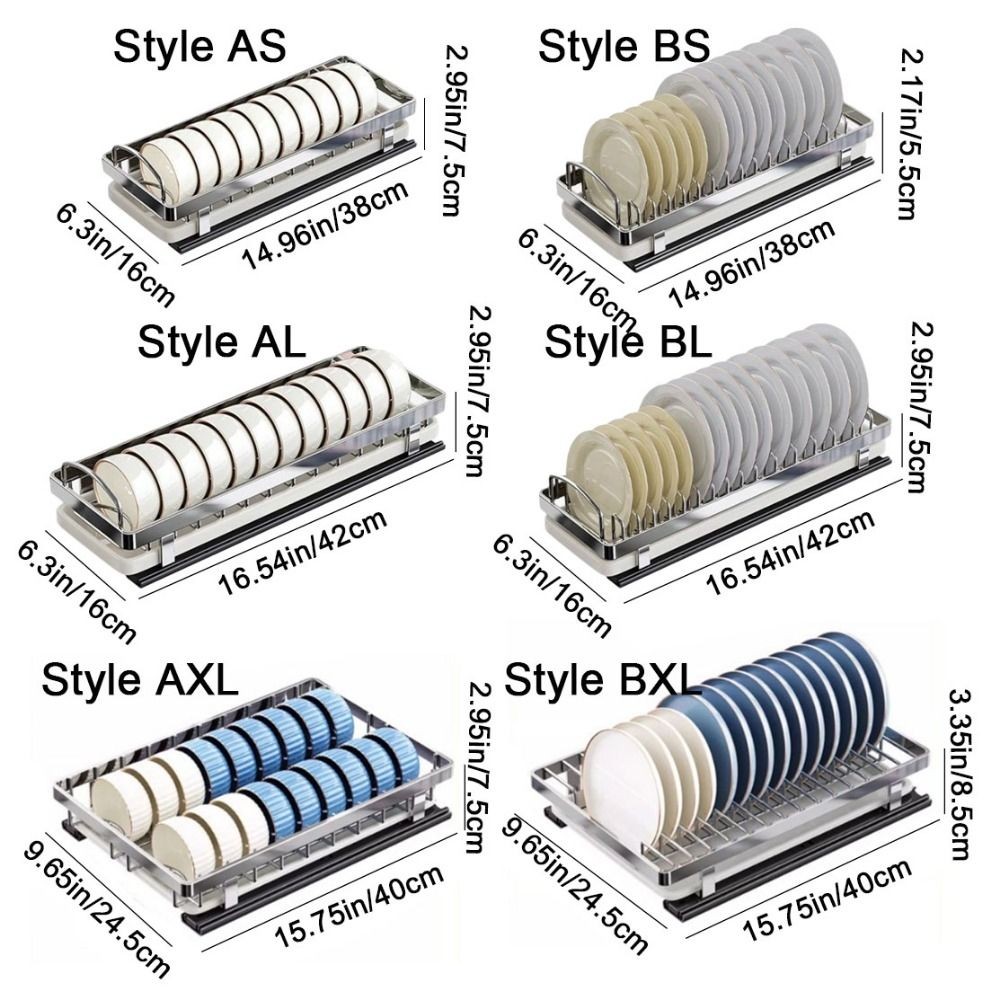 STATIONWA Giá để bát đĩa nhà bếp, Loại ngăn kéo Giá đựng bát đĩa kéo bằng thép không gỉ, bền có tay cầm lớn có khay thoát nước Tủ sắp xếp Bát ăn
