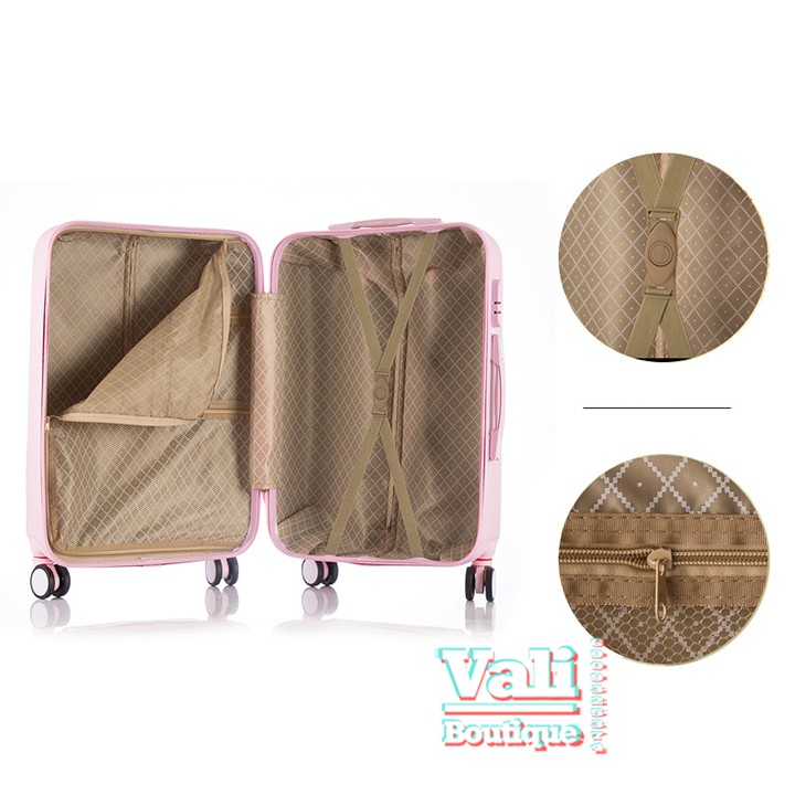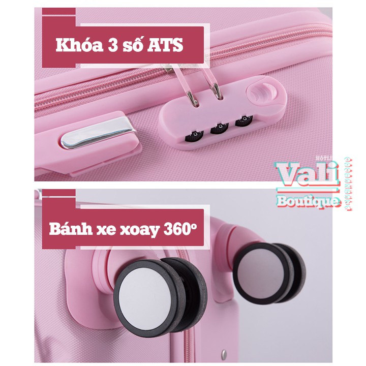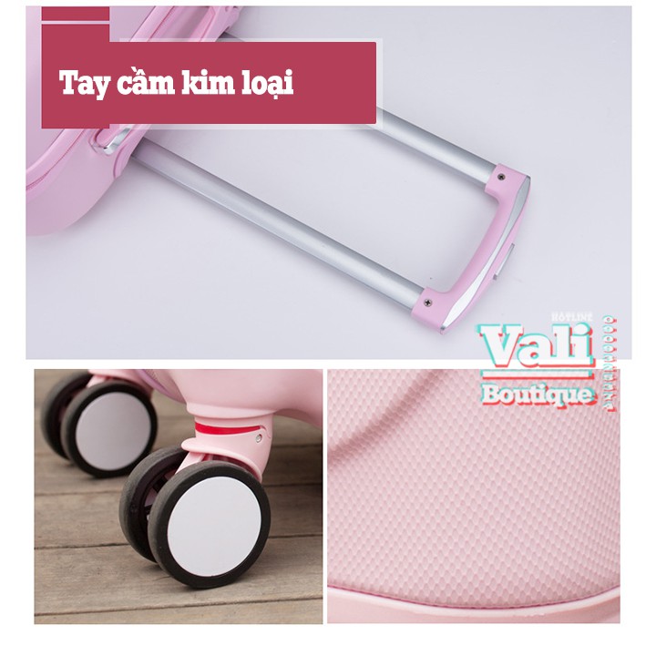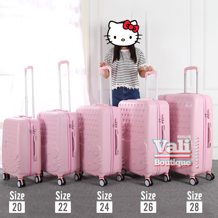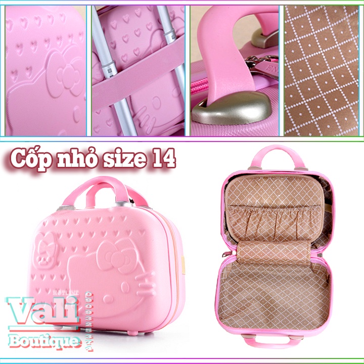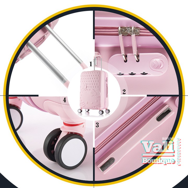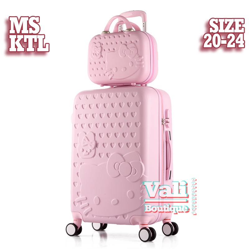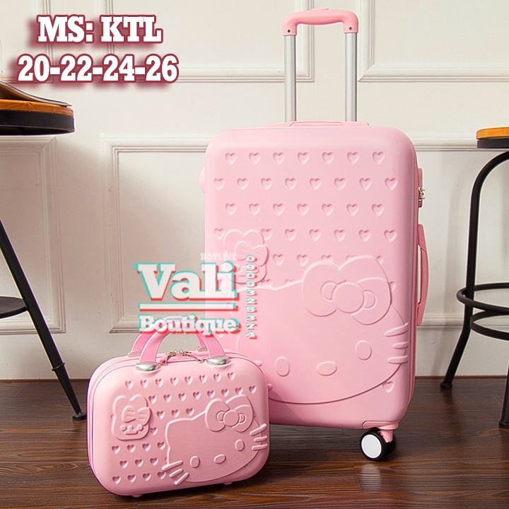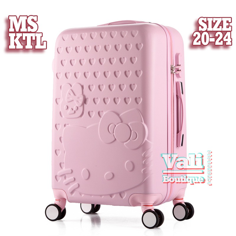 Vali kéo nhựa mèo Kitty - hồng phấn - size 20 - size 24 - cốp kitty (hàng loại 1)