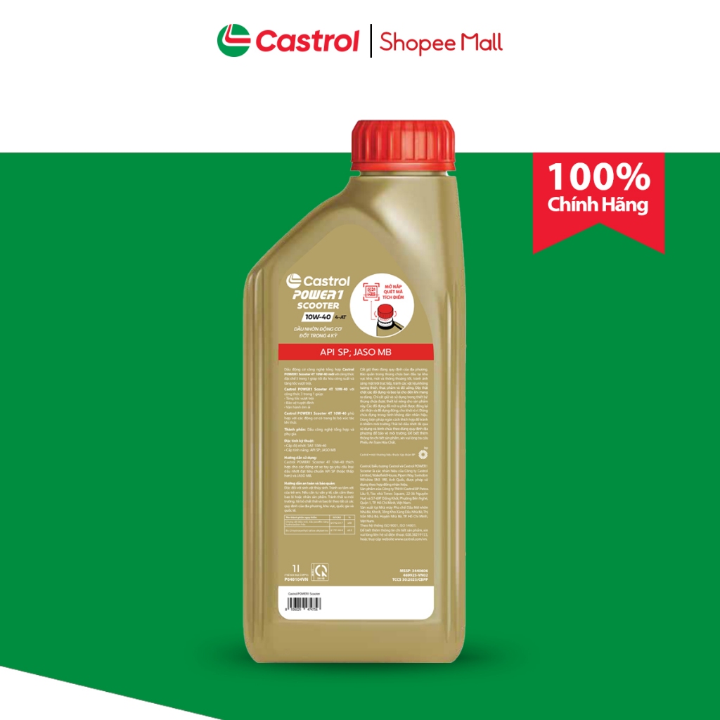 Dầu nhớt xe tay ga Castrol POWER1 SCOOTER 10W-40 4-AT (1L)