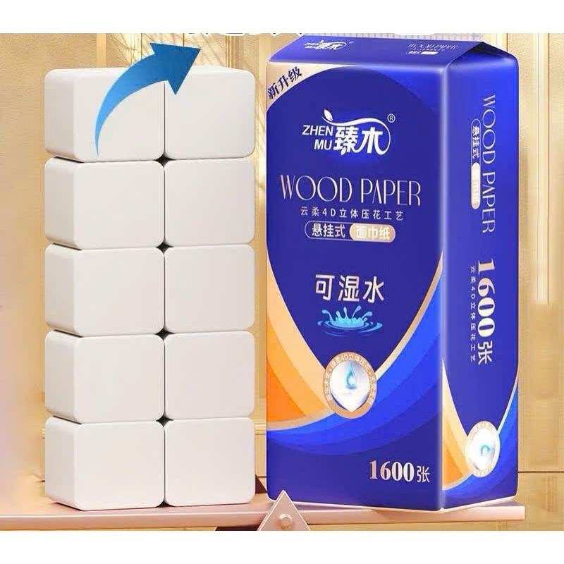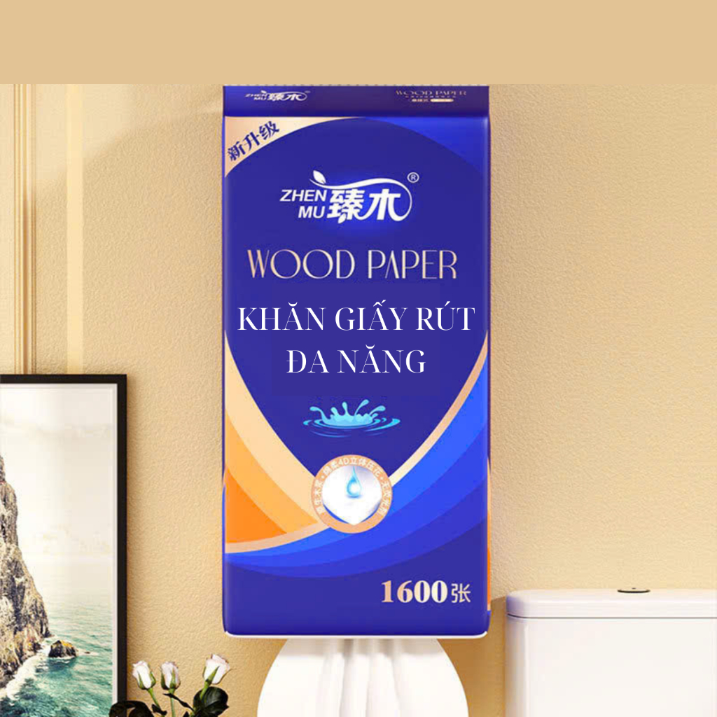 Thùng 12 Bịch Giấy Rút Treo Tường Đa Năng WOOD PAPER 1600 Tờ/ 4 Lớp Nội Địa Trung Cao Cấp