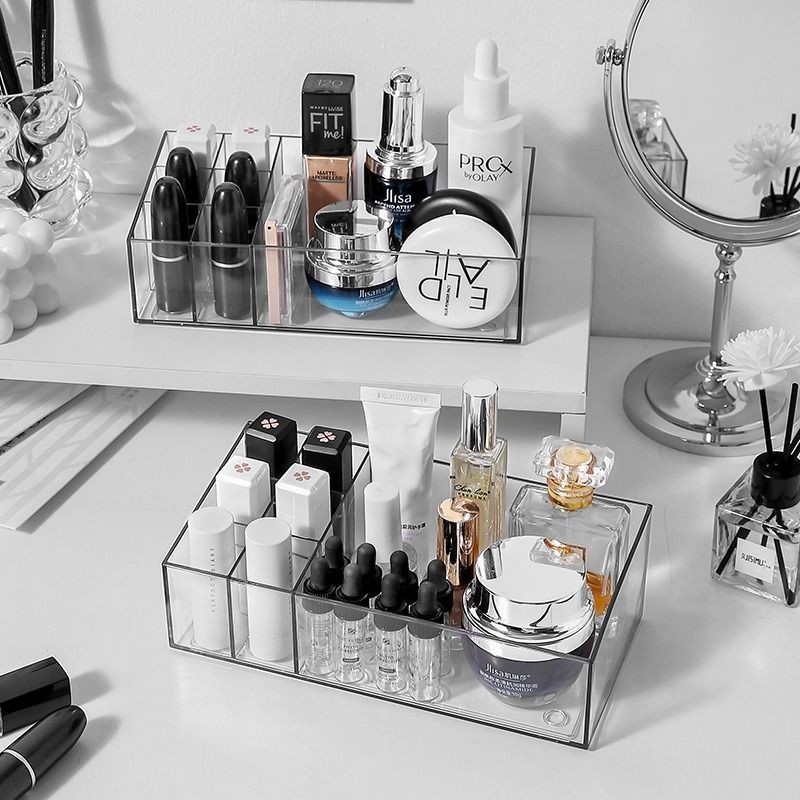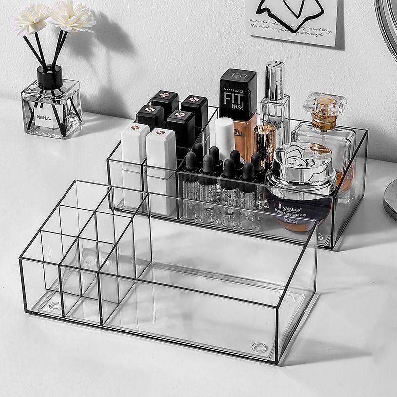 Khay đựng son, nước hoa 7 ngăn để bàn trong suốt bằng nhựa PET đẹp mắt 21x10.1x5.1cm