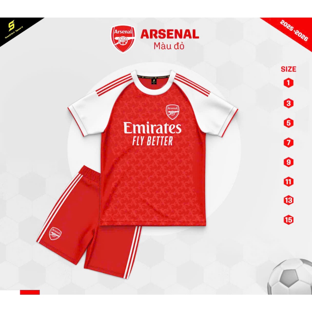 Bộ Quần Áo Bóng Đá Trẻ Em Câu Lạc Bộ ARSENAL (10-42kg) ,Đồ Đá Bóng Trẻ Em Chất Liệu Thun Lạnh Mềm Mại