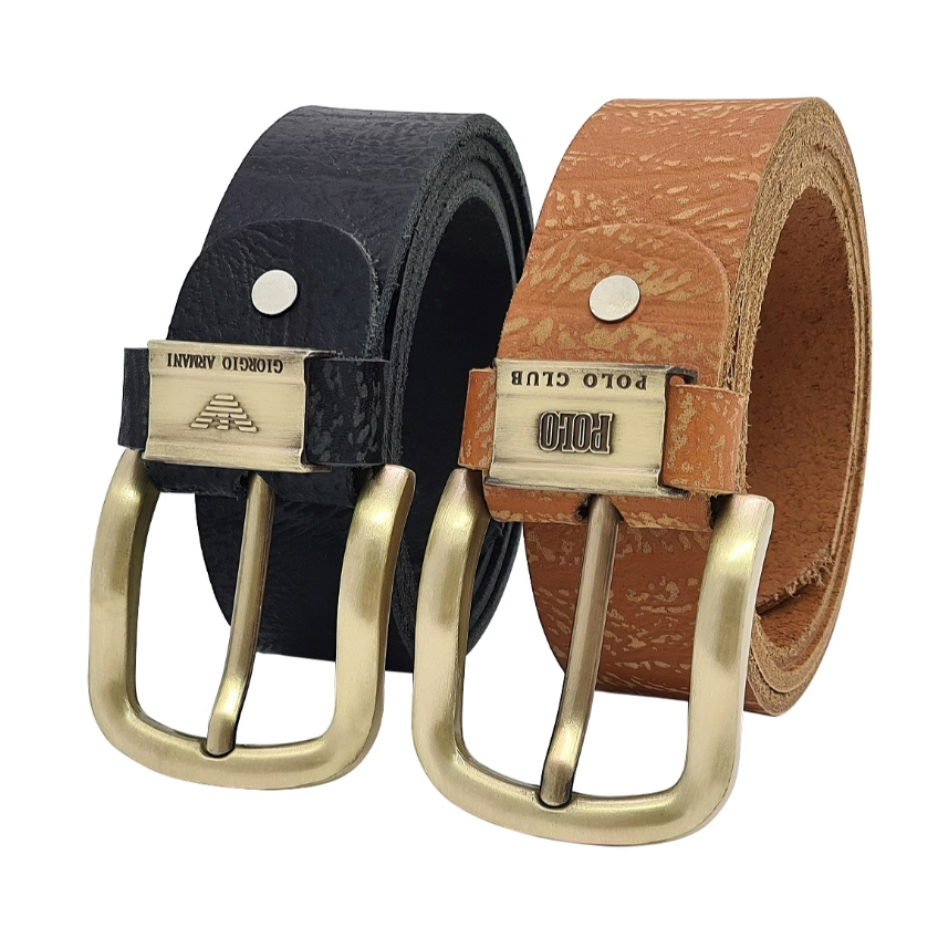 Dây lưng da bò thật bản thô DHM-444 | Khoá kim loại mạ đồng bo tròn cạnh |Giao logo ngẫu nhiên | Bảo hành 12 tháng