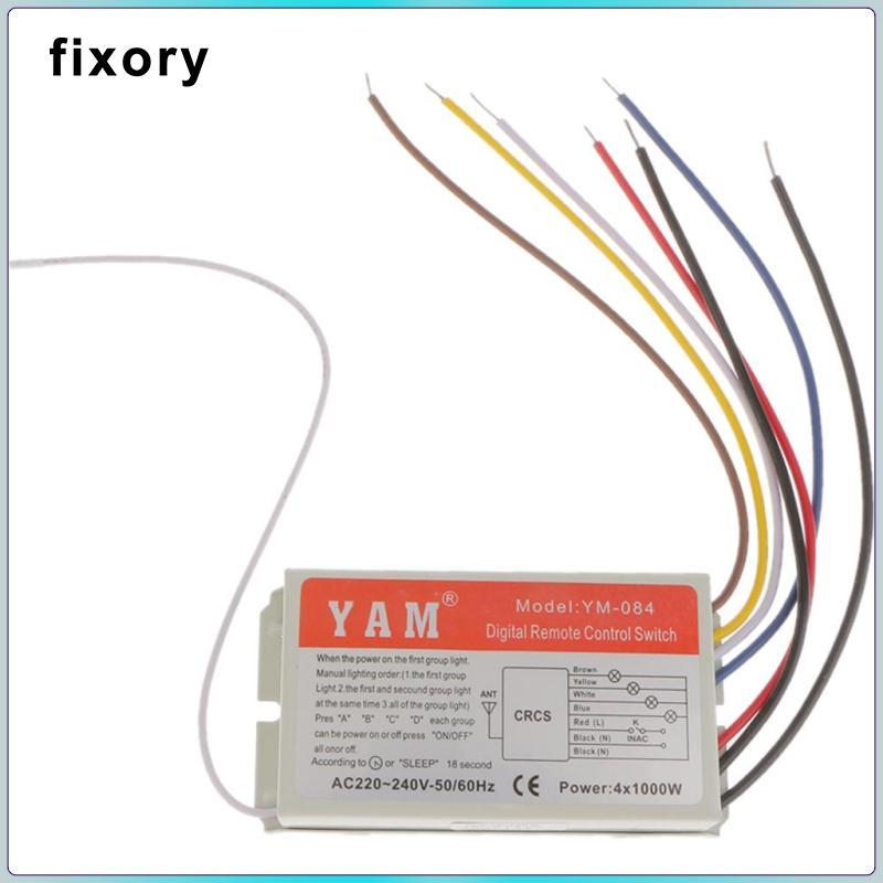 Công tắc đèn không dây 4 kênh 220V, Công tắc treo tường, Đèn đèn, Điều khiển từ xa RF