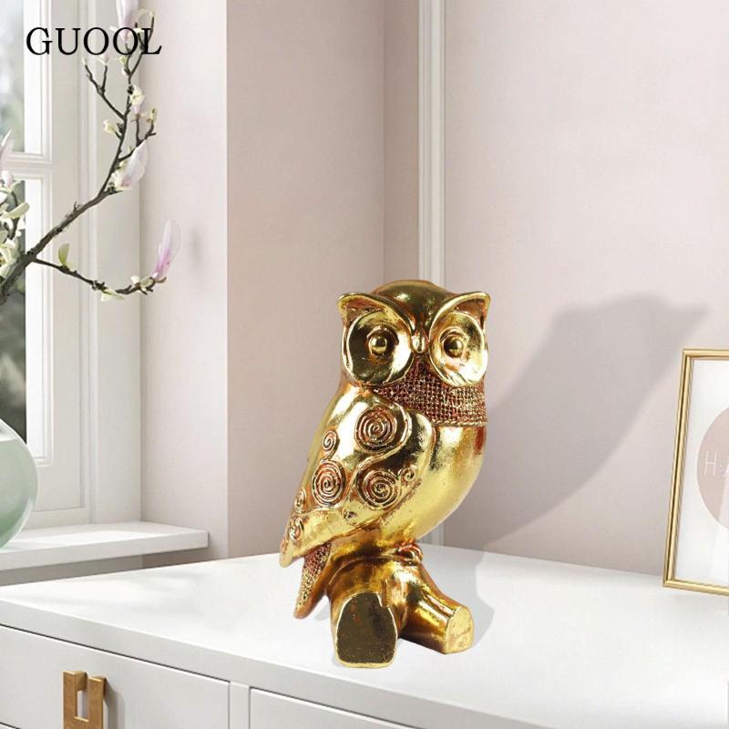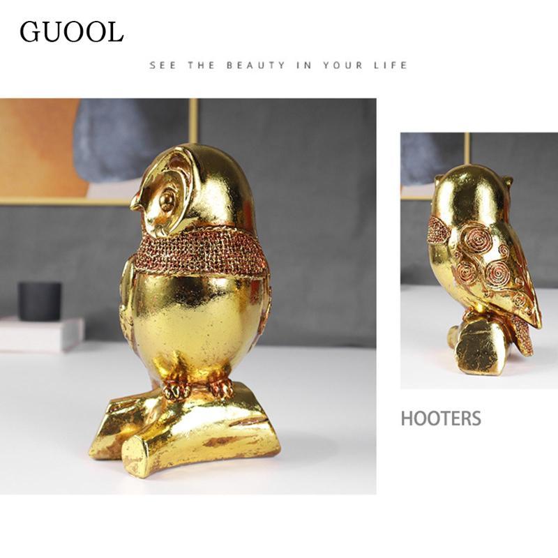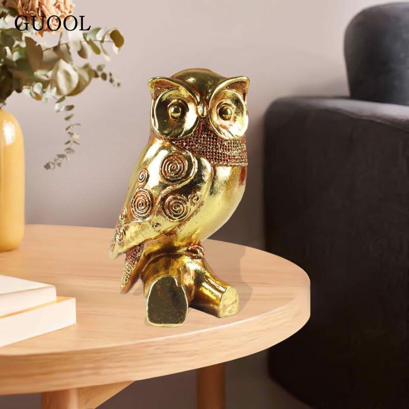 Tượng Cú Vàng Điêu Khắc Chim Sáng Tạo Cho Bàn Văn Phòng Phòng Khách